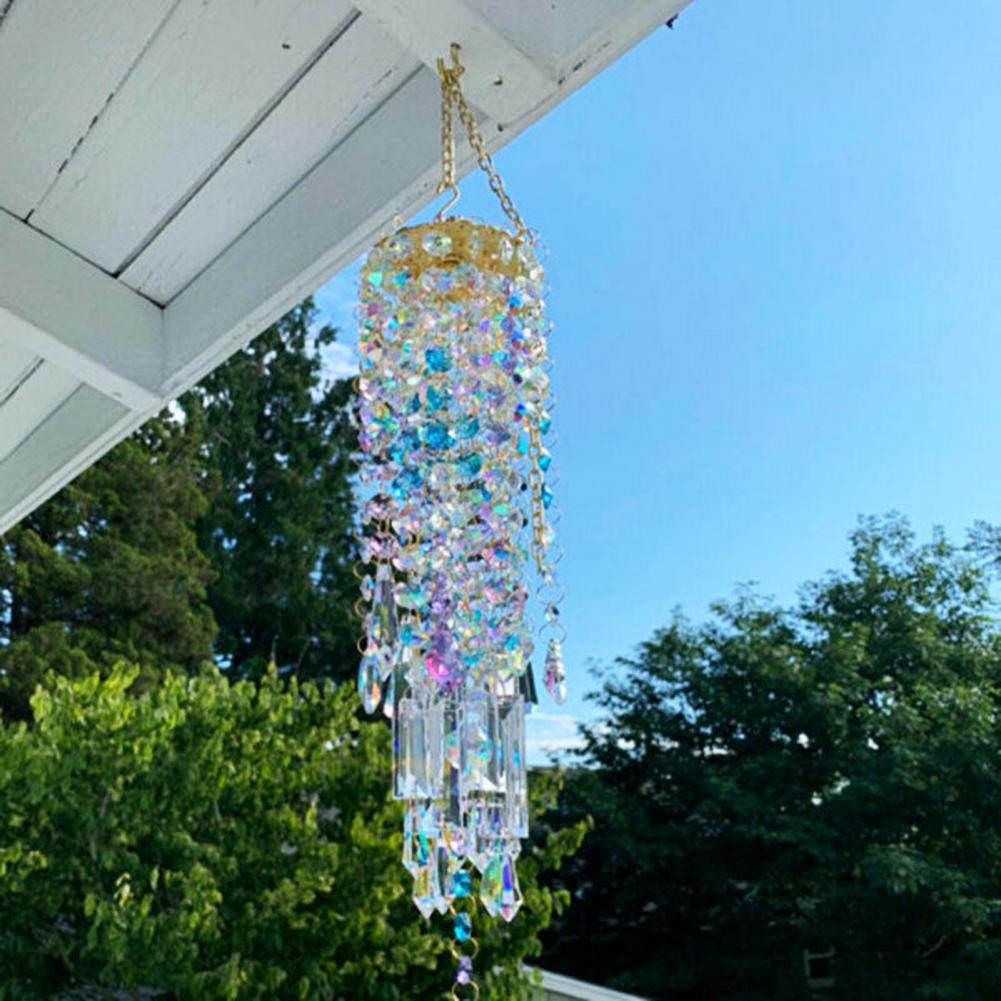 Колокольчик ветра разработан с прозрачной и неправильной формой, он изысканный и может преломлять различные цвета под солнечным светом.