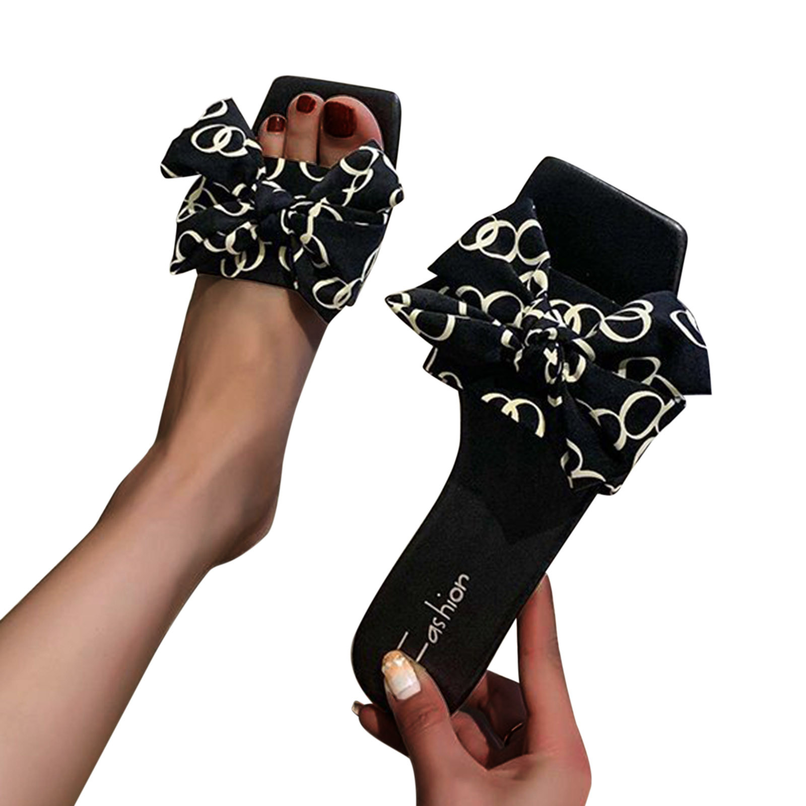 Новинка; Сезон весна-лето; Женские тапочки на плоской подошве с квадратным бантом