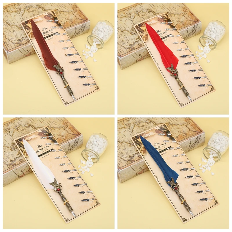 Цвет: десять цветов на выбор Размер продукта: размер пера: 25,5 × 4 см картонная упаковка Размер: 37 × 10,5 см Вес всего подарка: 45 г Материал изделия: держатель ручки из сплава + наконечник из нержавеющей стали Конфигурация упаковки: перо + десять наконечников