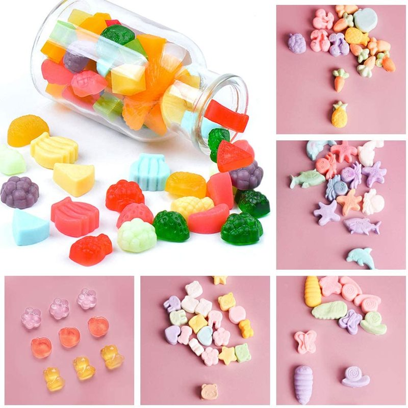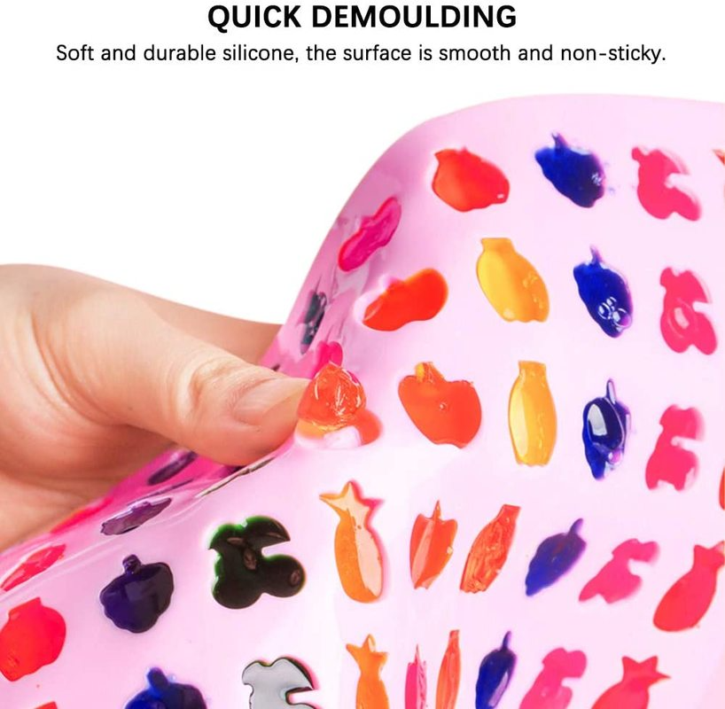 [Гибкая и не липкая] Мини силиконовая формочка для леденцов мягкая и прочная, с отличной гибкостью. Просто скручивая и мягко нажимая, вы можете легко демультировать фрукты, животных и геометрические гаммы, которые вы сделали. Они выскочат в очень подробной форме и не будут прилипать к форме или вызвать путаницу.
