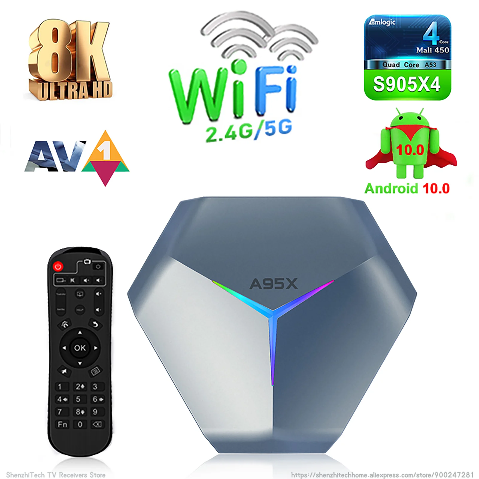Название: A95X F4 8K ТВ-приставка Android 10 с четырехъядерным процессором Amlogic S905X4 4 Гб ОЗУ 128 Гб ПЗУ WIFI смарт-приставка IPTV OTT TV OTT для M3U 2021