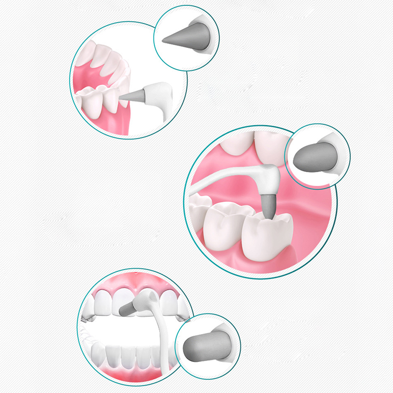 7. Комплектация: классический набор из 3 головок (4 шт.) : 1 основное оборудование, 1 остроконечная мягкая Шлифовальная головка, 1 чистящая головка из легированной стали, 1 круглая мягкая Шлифовальная головка; S - 5-1 комплект (6 шт.) : 1 основное оборудование, 1 остроконечная мягкая Шлифовальная головка, 1 x чистящая головка из легированной стали, 1 x круглая мягкая Шлифовальная головка, 1 x конусная мягкая Шлифовальная головка, 1 x Кисть для покрытия языка