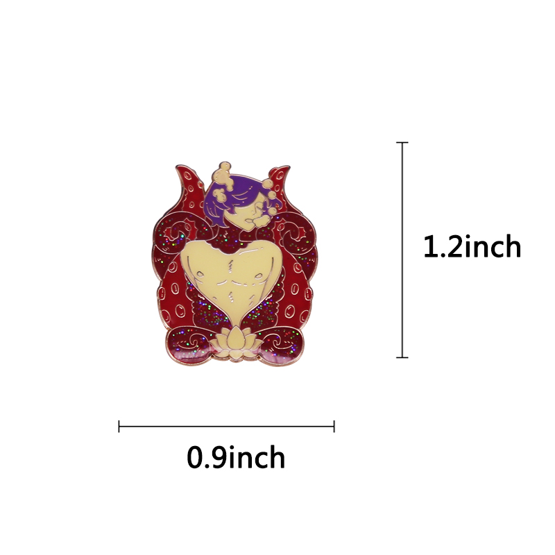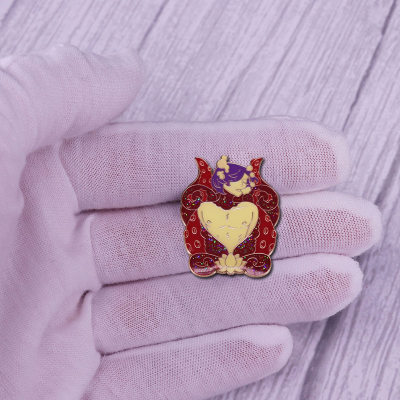 Эмалированная брошь в форме сердца с соединением синяя и фиолетовая на сумку