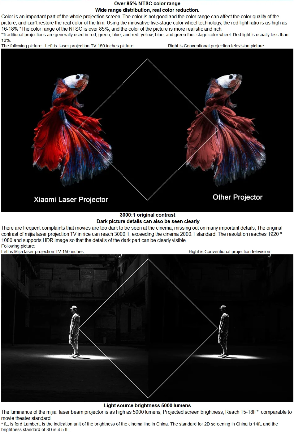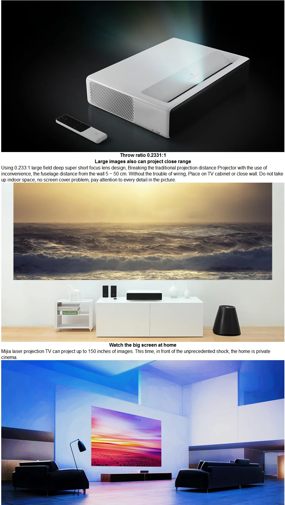 Mi Laser Projector150"Ультра-короткое расстояние броска,