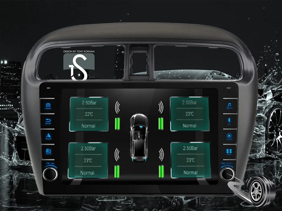В режиме реального времени отображается давление и температура в 4 раза, как только давление в шинах или Температурный Предел превышен, сигнал тревоги будет немедленно срабатывать.