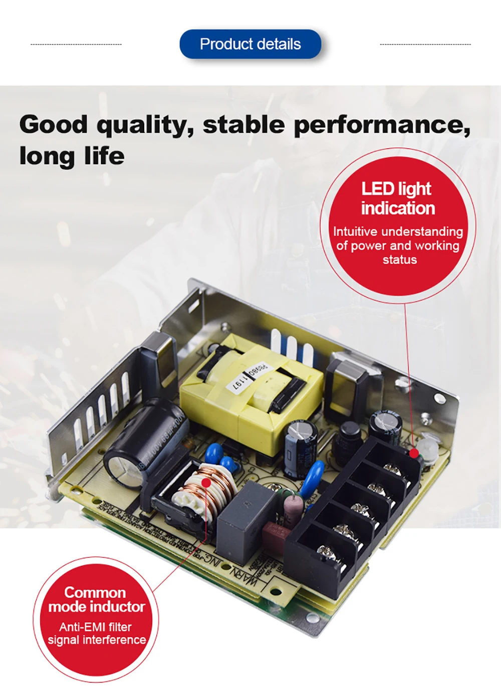 • Полный диапазон входного сигнала переменного тока• Выдерживает 300 В переменного тока импульсный вход в течение 5 секунд• Без нагрузки потребеление энергии <0,2 W• Малый размер, низкий внешний вид 1U• Рабочая температура до 70 ℃• Тип защиты: короткое замыкание/перегрузка/перенапряжение• Естественное воздушное охлаждение• Соответствует IEC/EN 60335-1(PD3) и IEC/EN61558-1, 2-16 подходит для применения в электроприборов• Работает на высоте 5000 метров (примечание 8)• Выдерживает 5G Испытание на вибрацию• Высокая эффективность, высокая срок службы и высокая надежность• Светодиодный индикатор запуска питания• Защита от перенапряжения разряда Ⅲ• 100% испытание на полную нагрузку• Гарантия 3 годаПрименение: