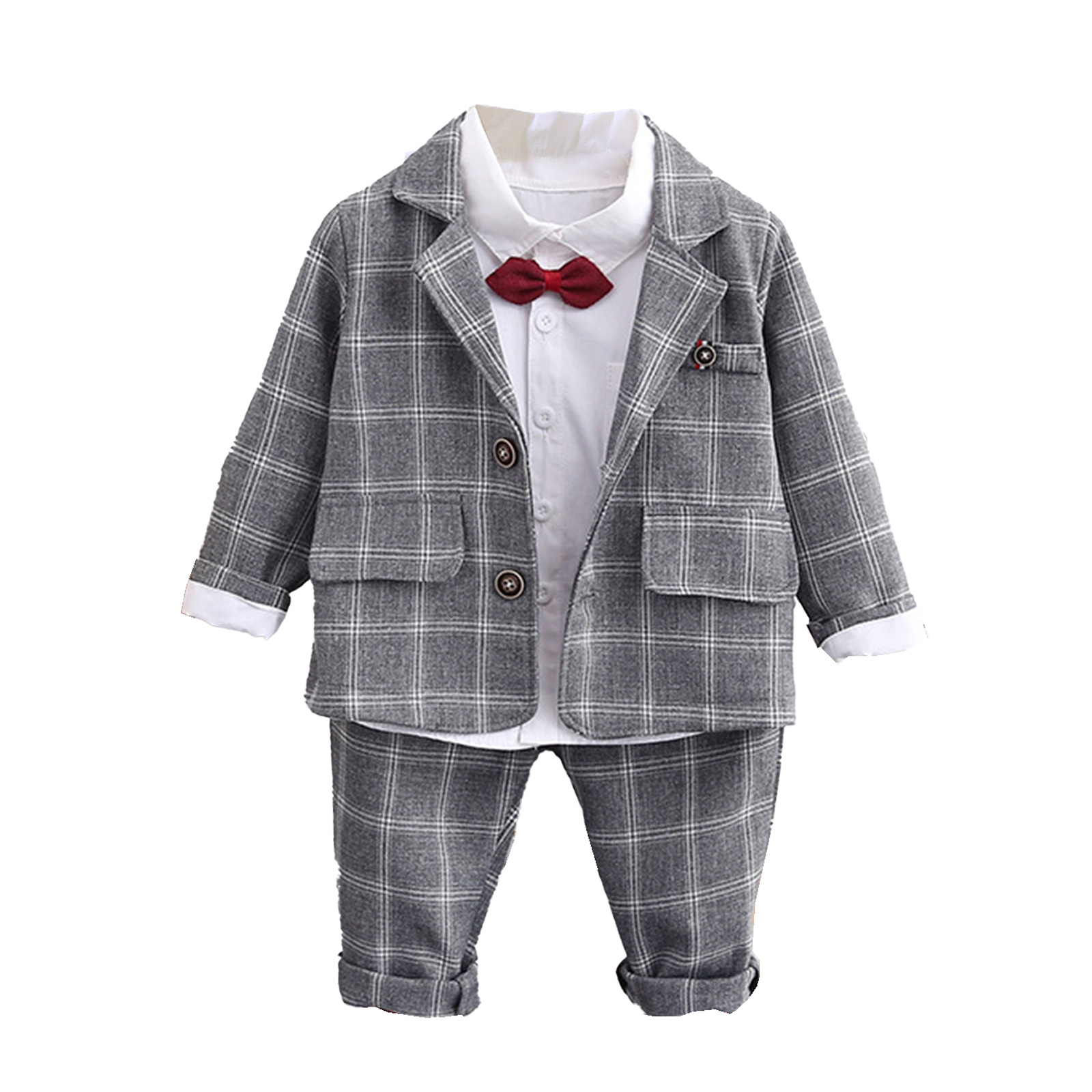 Комплекты детской одежды из 3 предметов свадебные костюмы для мальчиков, клетчатый джентльменский костюм для малышей, комплект, рубашка на пуговицах, куртки длинные штаны костюм для мальчиков