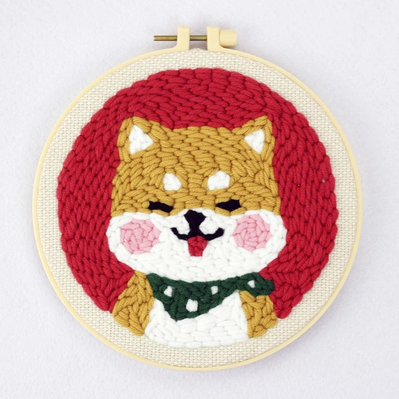 Стартовый набор для милых собак, набор игл для начинающих с регулируемым обручем, пряжа, мешковина с рисунком, руководство на английском языке