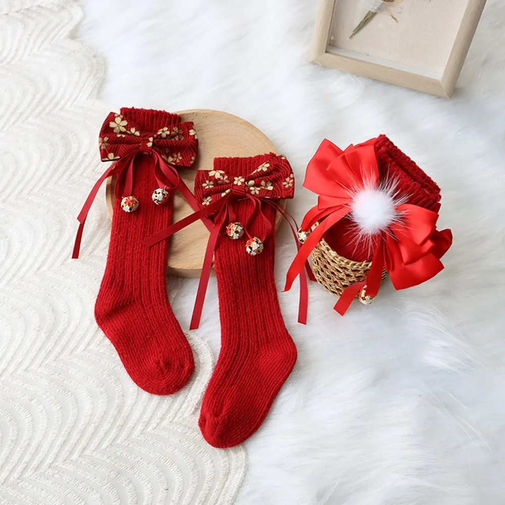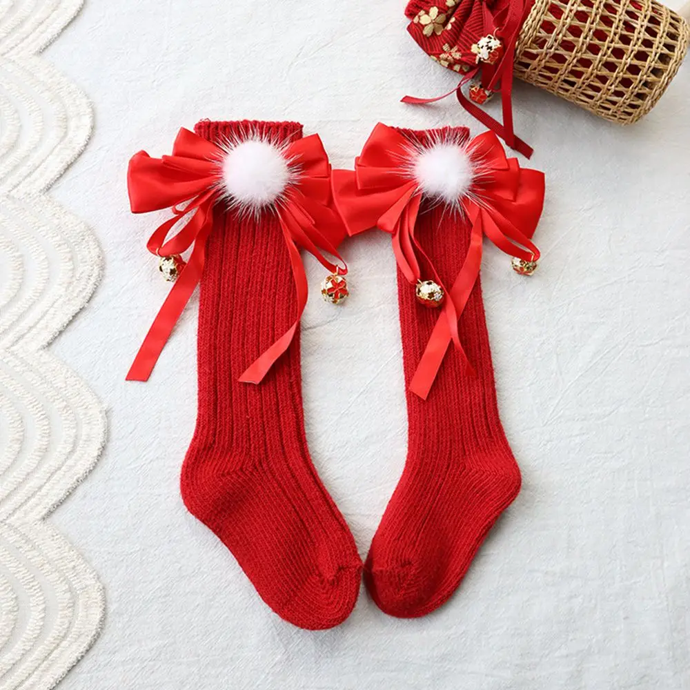 Чулки для девочек кружевные колготки с бантом Детские хлопковые вязаные в