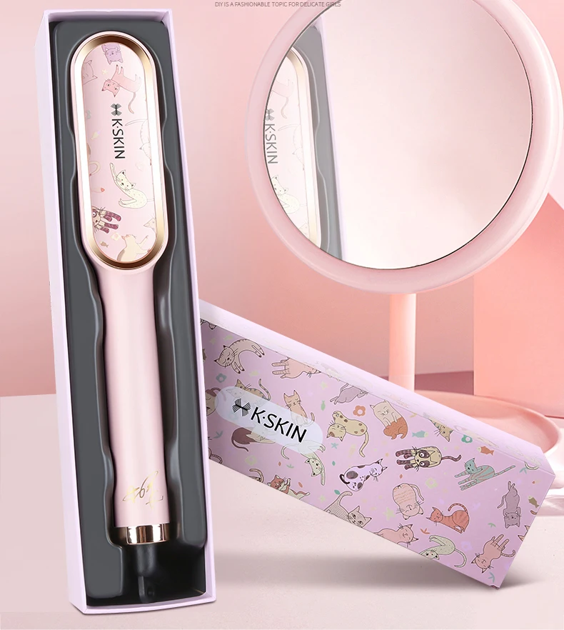 Многофункциональный Профессиональный Розовый Выпрямитель для волос турмалин керамическая щетка для завивки волос милый кошачий дизайн гребень для завивки волос