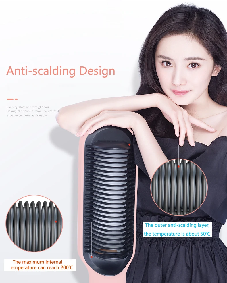 Не будут ошпарены; Двухслойная конструкция, внутренняя часть гребня-это температура нагрева, а снаружи добавлен дополнительный слой защиты. Максимальная температура составляет всего 50 ℃, что может предотвратить скальп кожи головы, лица или рук.