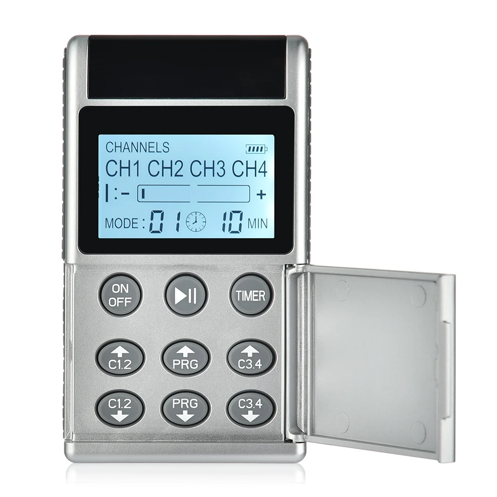 3. Поддержка 4 независимых выхода (CH1, CH2, CH3, CH4 каналы), чтобы разрешить индивидуальные приложения на различных областях тела с различной интенсивностью массажа одновременно, практично делиться с друзьями или семьей вместе.