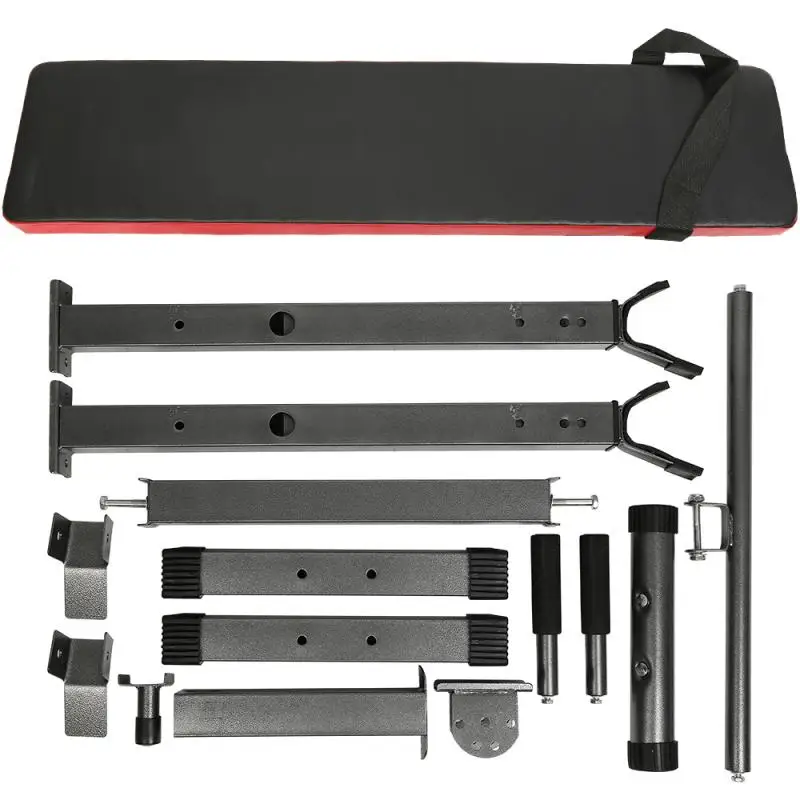 5. Очень подходит для тренировок в домашнем тренажерном зале, для начинающих и спортсменов-любителей, это спортивное оборудование также очень интересно, потому что скамейку можно просто сложить после упражнений, поэтому требуется только небольшая часть пространства. Лежа поверхность может быть согнута без каких-либо хлопотных операций зажима, и может быть закреплена с помощью фиксирующих штифтов