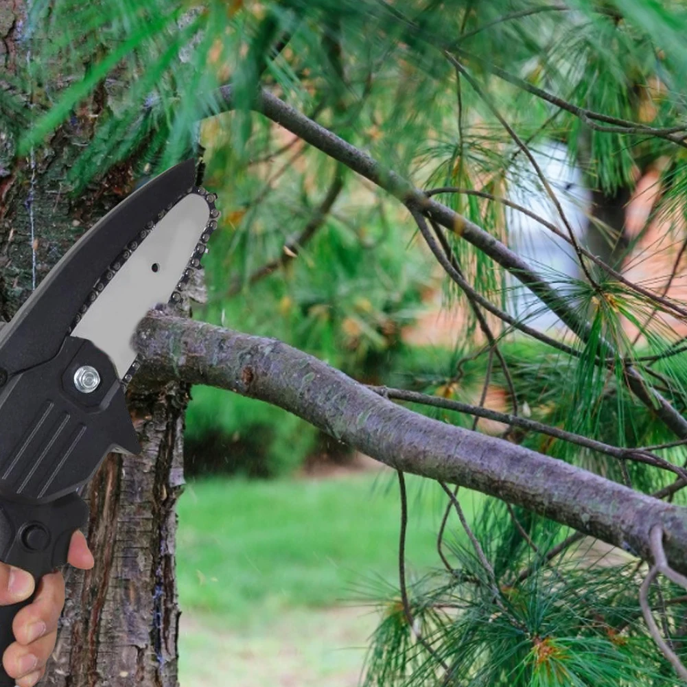 * 1. Перезаряжаемая Электрическая цепная пила, светильник и портативный, длительный срок службы батареи и не повредит кору. Легкий корпус, маленький размер, который можно держать одной рукой, вы не устанете после длительного использования.