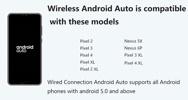 Full wireless/wired Android Auto functionality for compatible Android phone models.