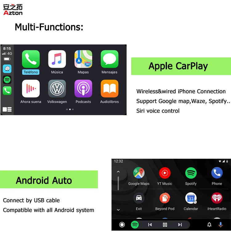 Full wireless/wired CarPlay functionality for iPhone 5 or later.