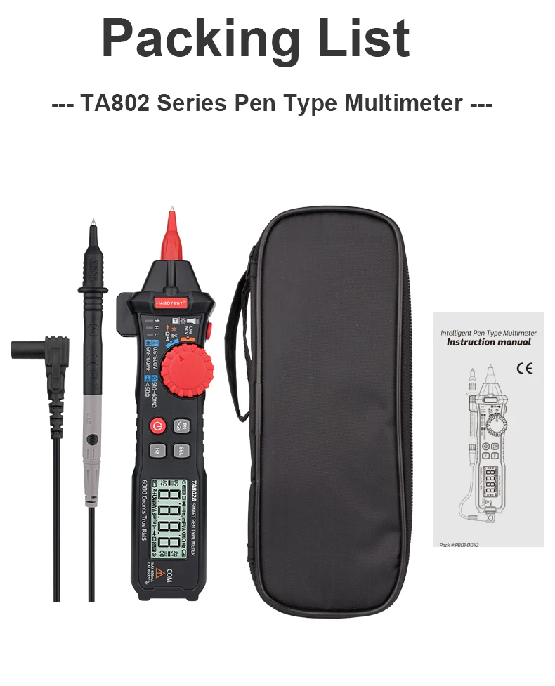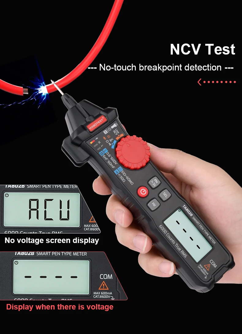 Professional Digital Multimeter Smart Pen Type Multimeter True RMS Ohm Capacitance Hz AC DC NCV Automotive Tester HABOTEST TA802