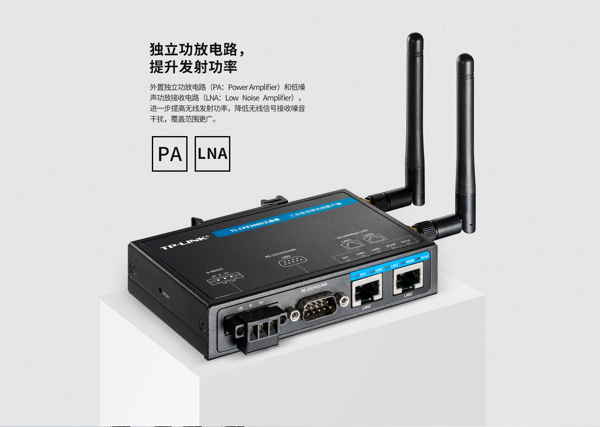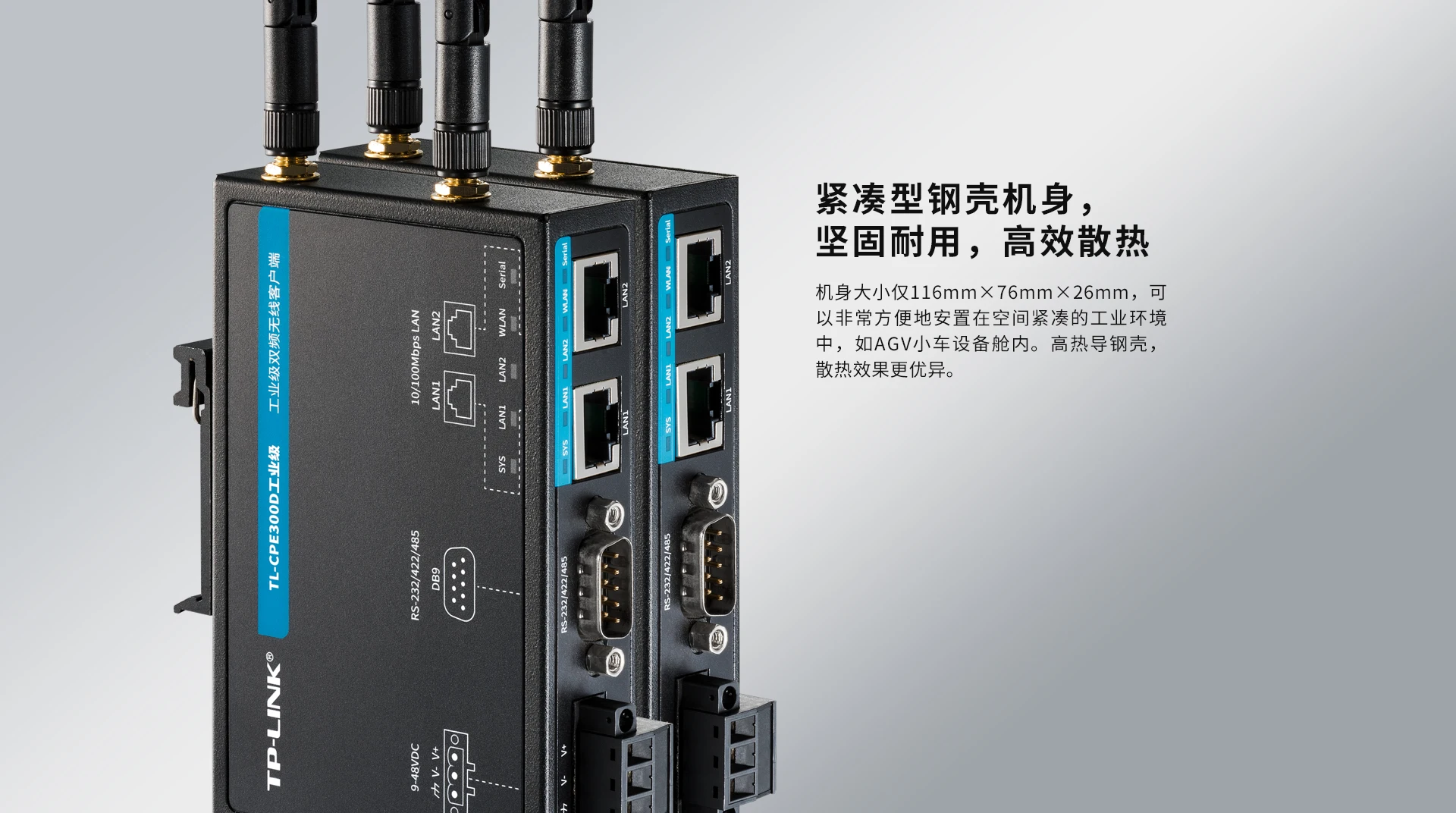 > TL-CPE300D industrial grade-это беспроводной клиент промышленного класса, недавно разработанный и запущенный TP-LINK. Он принимает выбор материала промышленного класса, дизайн и технологии для обеспечения стабильной связи в экстремальных условиях и сильных условиях помех. Он может работать в режиме клиента, высокой мощности передачи, улучшенного роуминга и других технологий, RS-232/422/485 последовательной связи, обеспечивая профессиональную беспроводную связь для интеллектуального производства, складской логистики, транспортировки, электроэнергия и другие отрасли промышленности.