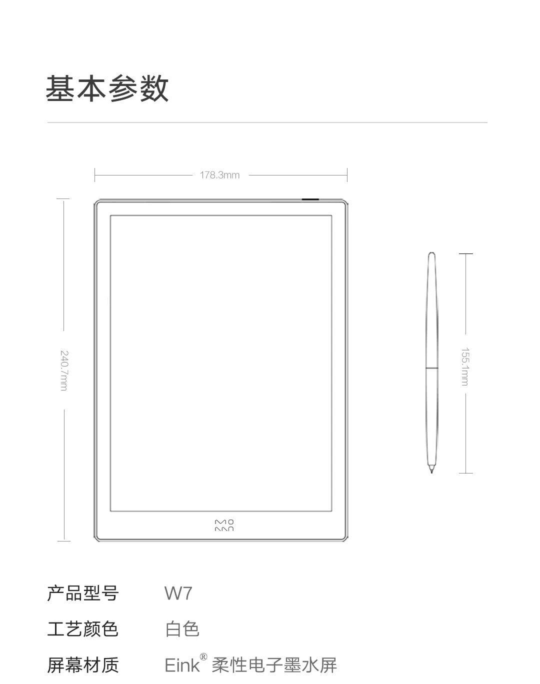 3.Moaan W7 имеет экран E INK Mobius с разрешением 1404 × 1872. Он имеет слой сенсорного экрана, а также WACOM. Он поставляется с электромагнитным стилусом с поддержкой 4096 уровней давления и частотой обновления до 360 раз в секунду. Внутренний алгоритм способен распознавать рукописный текст и преобразовывать его в электронный текст. Это особенность, которую имеет только небольшая горстка продуктов в этой категории.