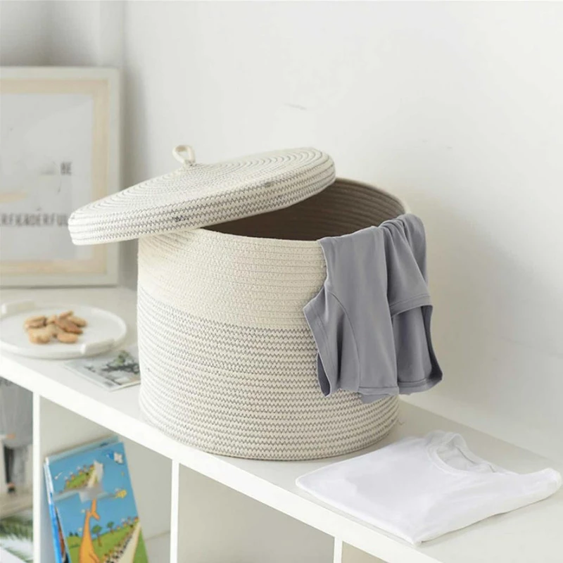 Экологически безопасный материал: Наша корзина для хранения хлопковой веревки изготовлена из экологически безопасного, безхимического хлопка. Очень подходит для хранения детских игрушек, детской одежды, подушек, одеял. Это очень удобная и практичная корзина для белья.