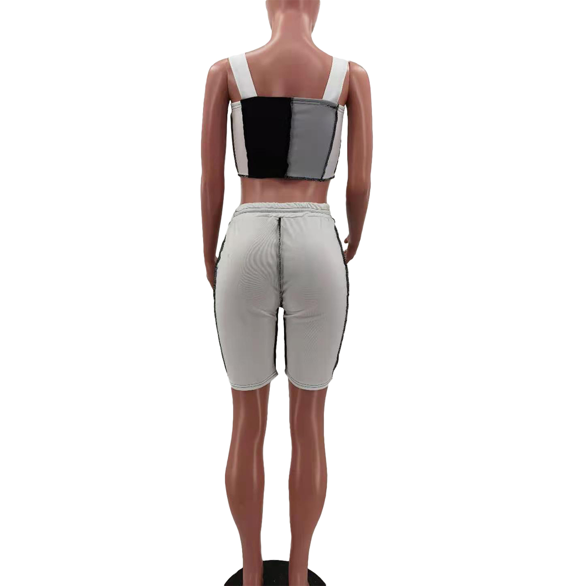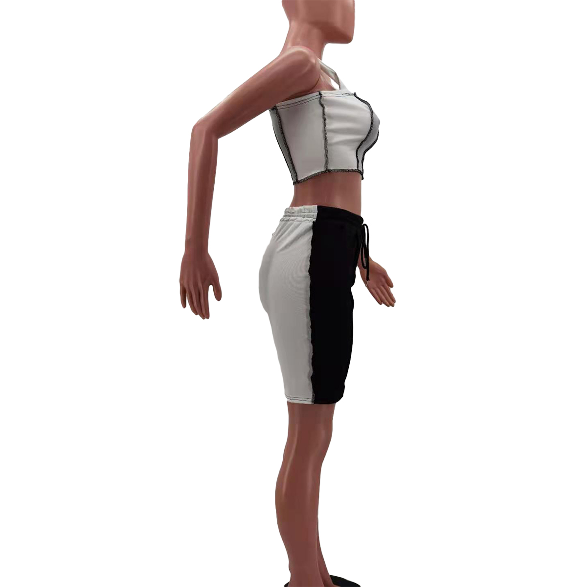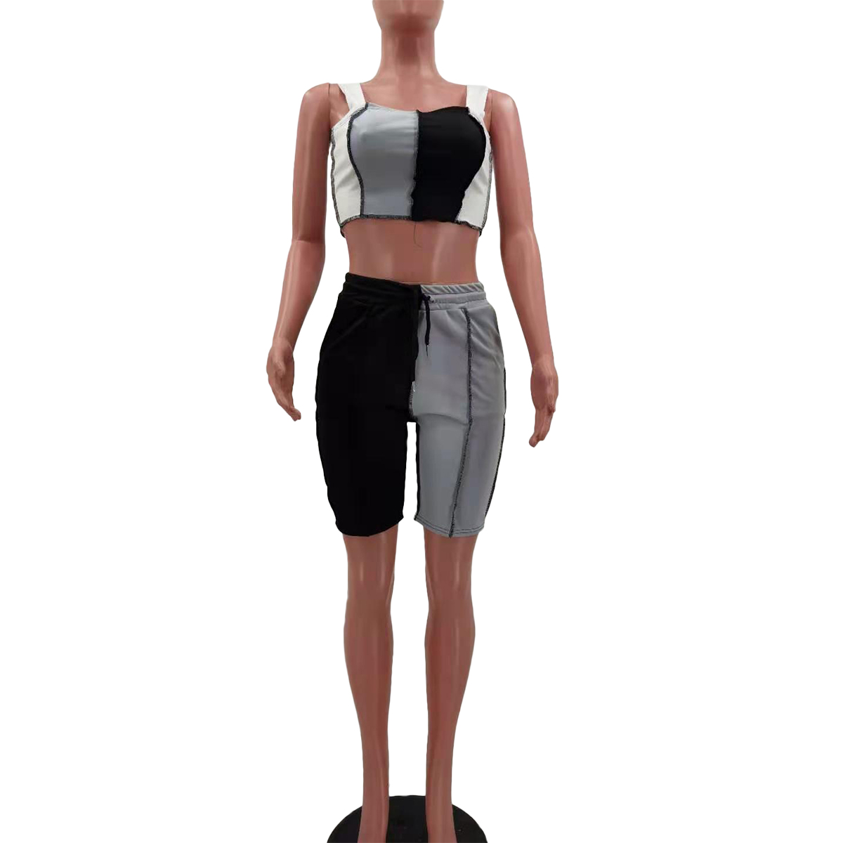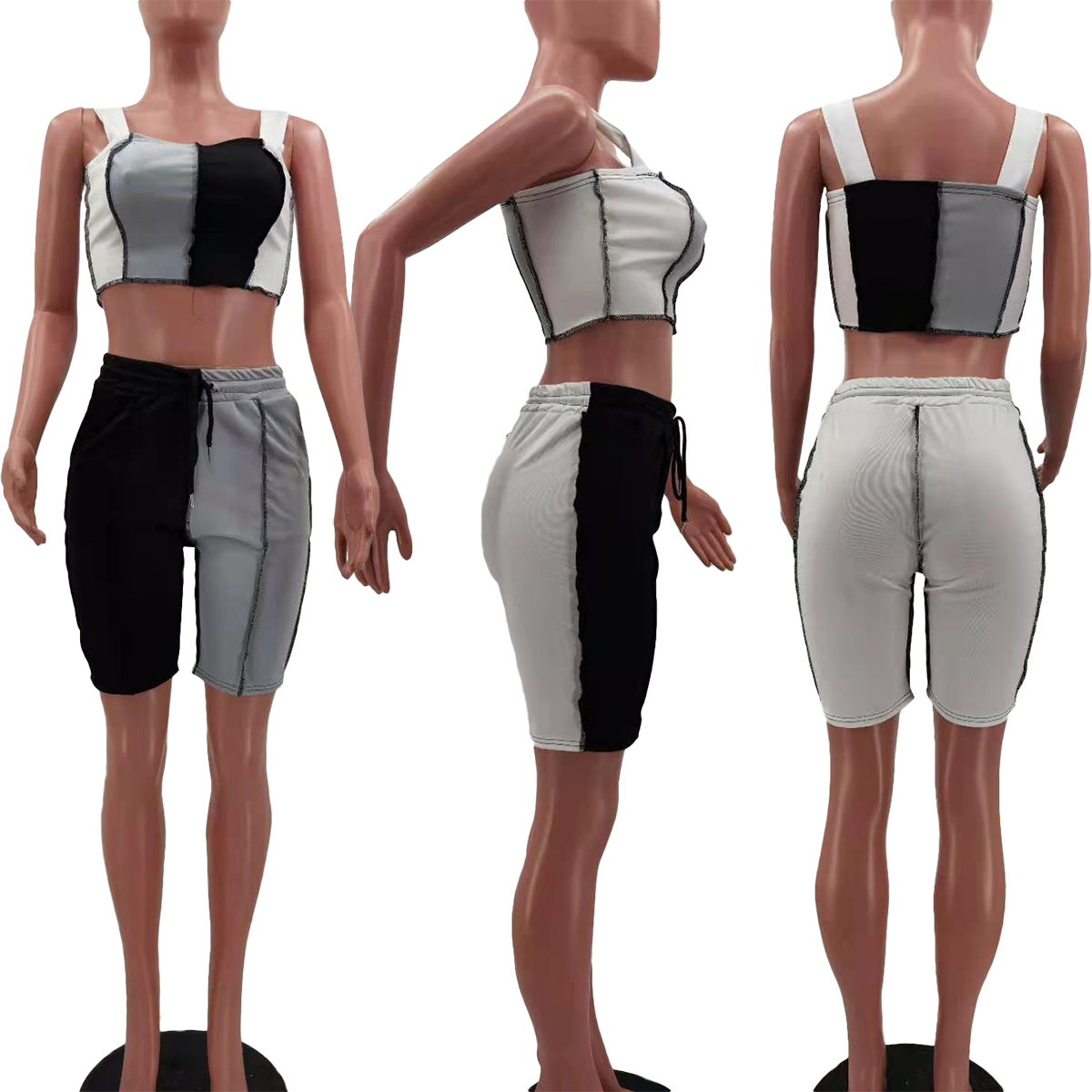Женский летний спортивный костюм из 2 предметов, облегающий укороченный топ подходящего цвета + шорты с высокой талией на завязках