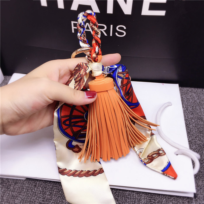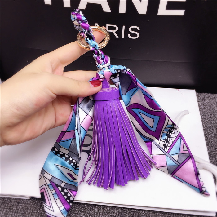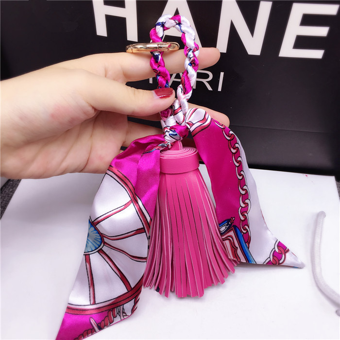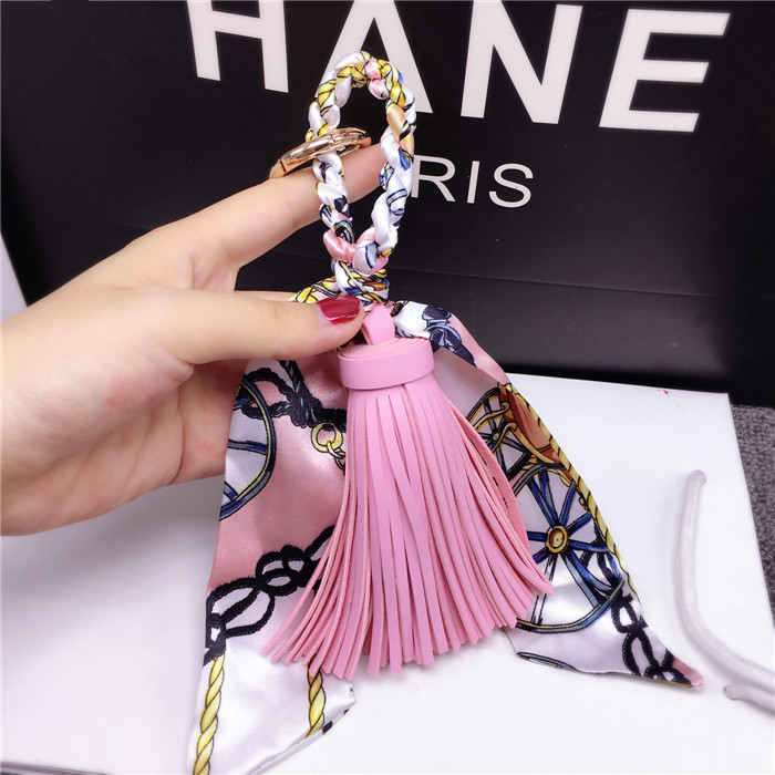 Светильник, Роскошный шелковый шарф, кисточка, аниме, автомобильный брелок для женщин, сумка, кулон, персональный брелок для ключей с кисточкой, рюкзак, подвеска, модное кольцо, цепочка
