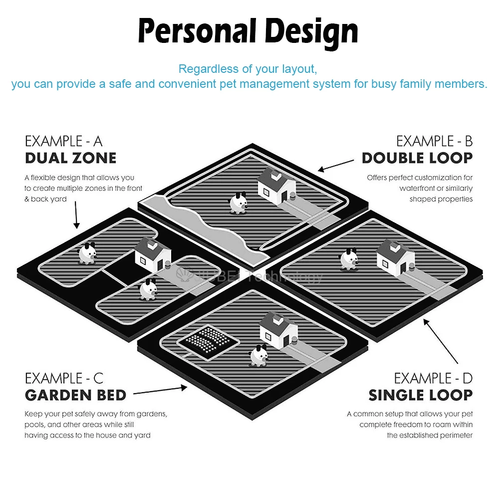 1. Максимальная поддержка 5 собак, самый большой радиус прямой линии-990ft, беспроводной забор и как центр передатчика.