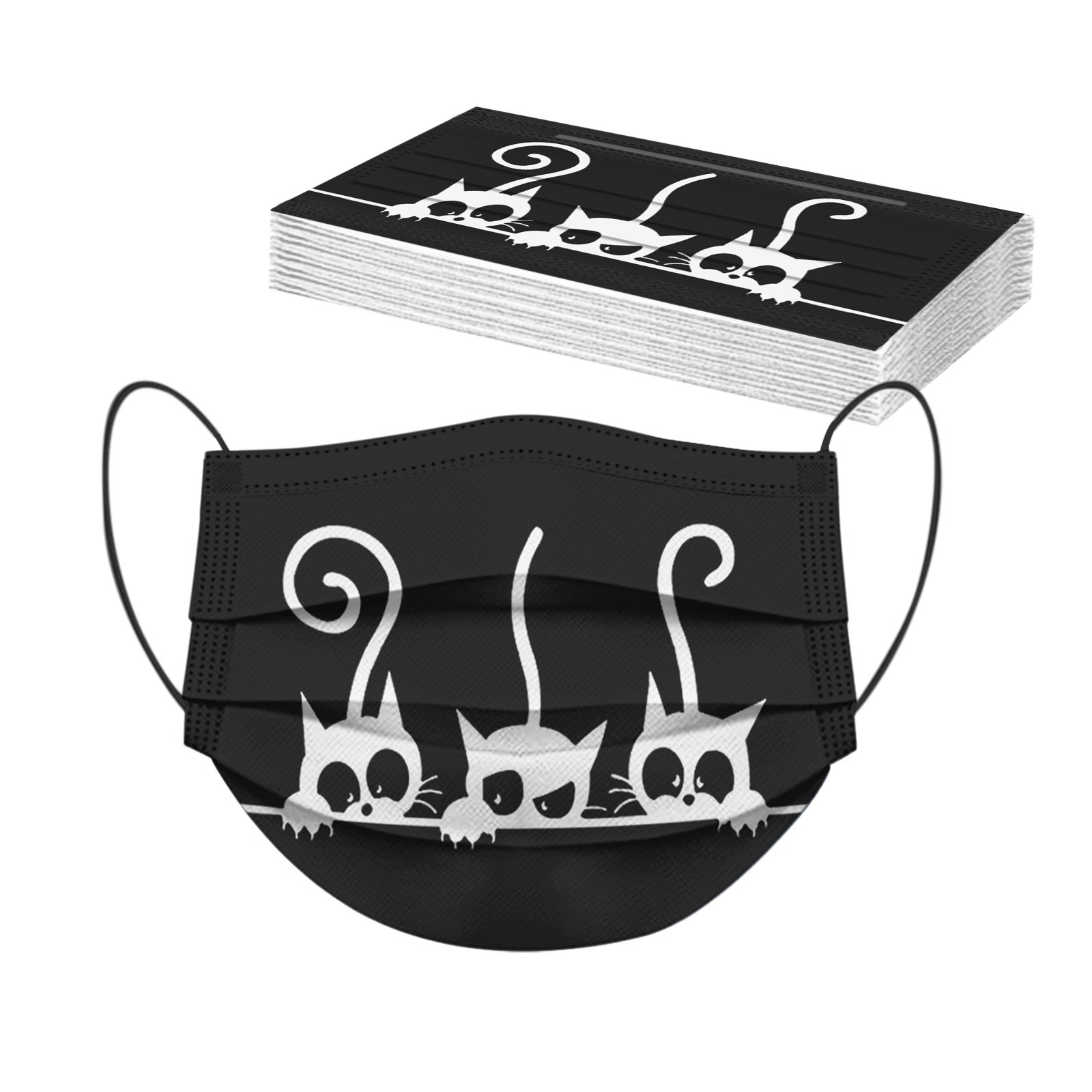 10 шт. взрослых и принтами кошек мультфильмов дышащий 3-Слои одноразовые маски