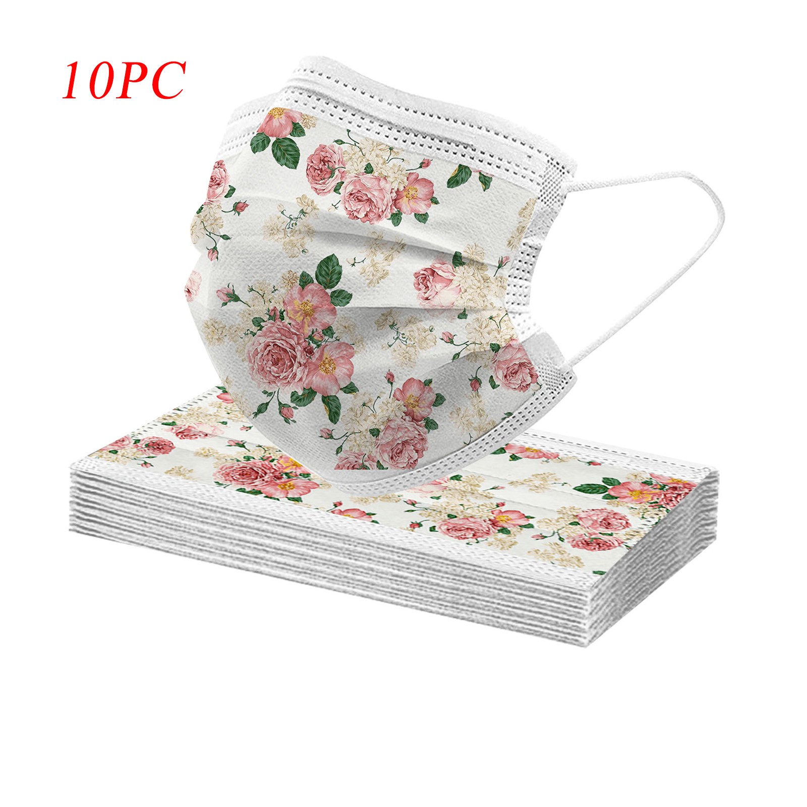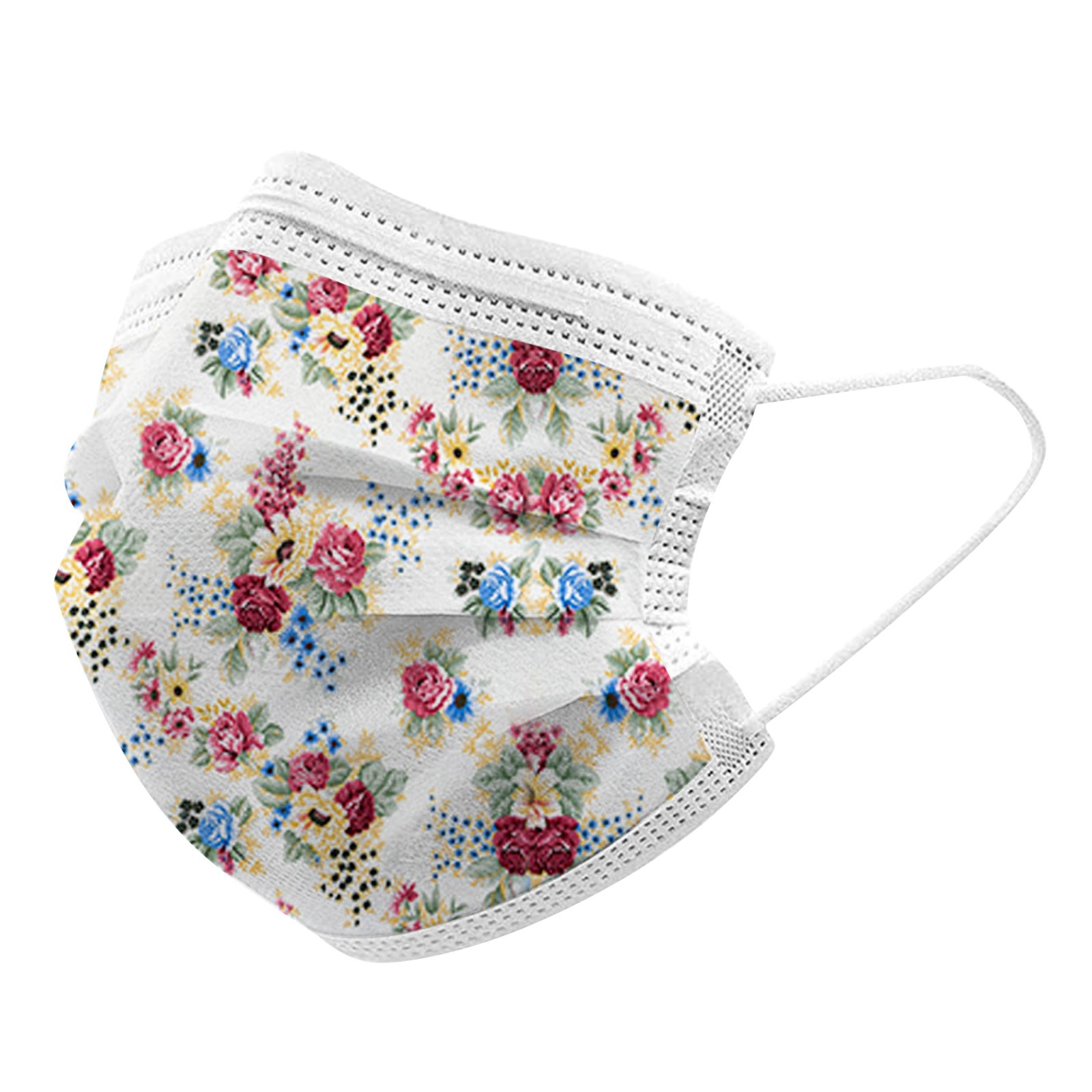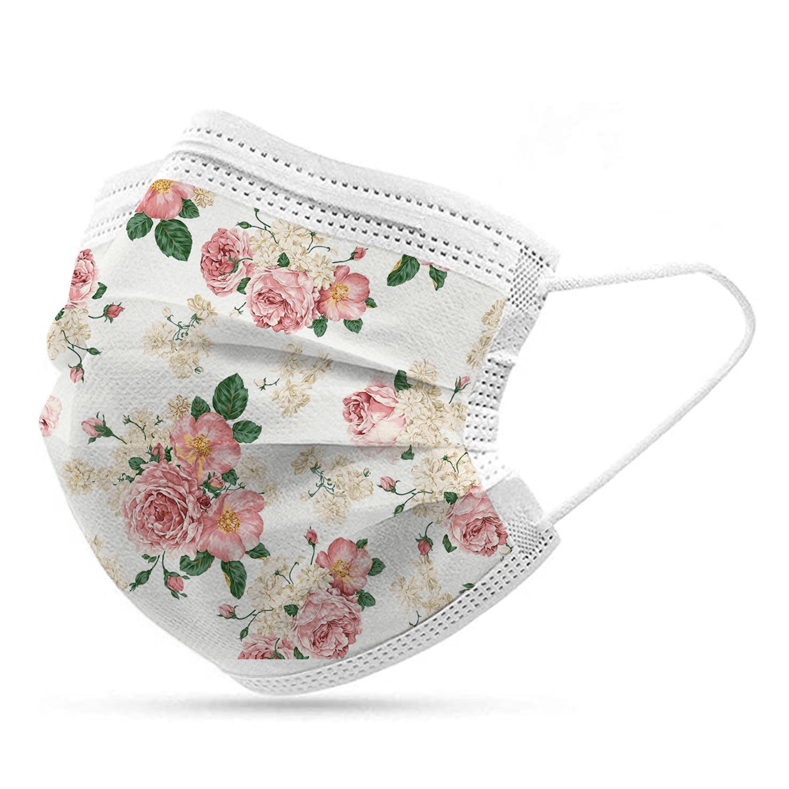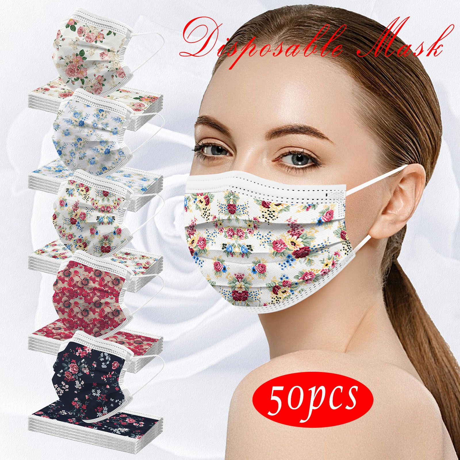 50PCS Adults Beautiful Elegant Flower Prints Breathable 3 -Layer Disposable Mask