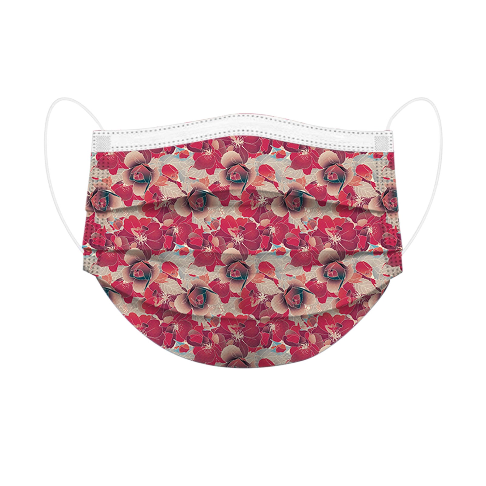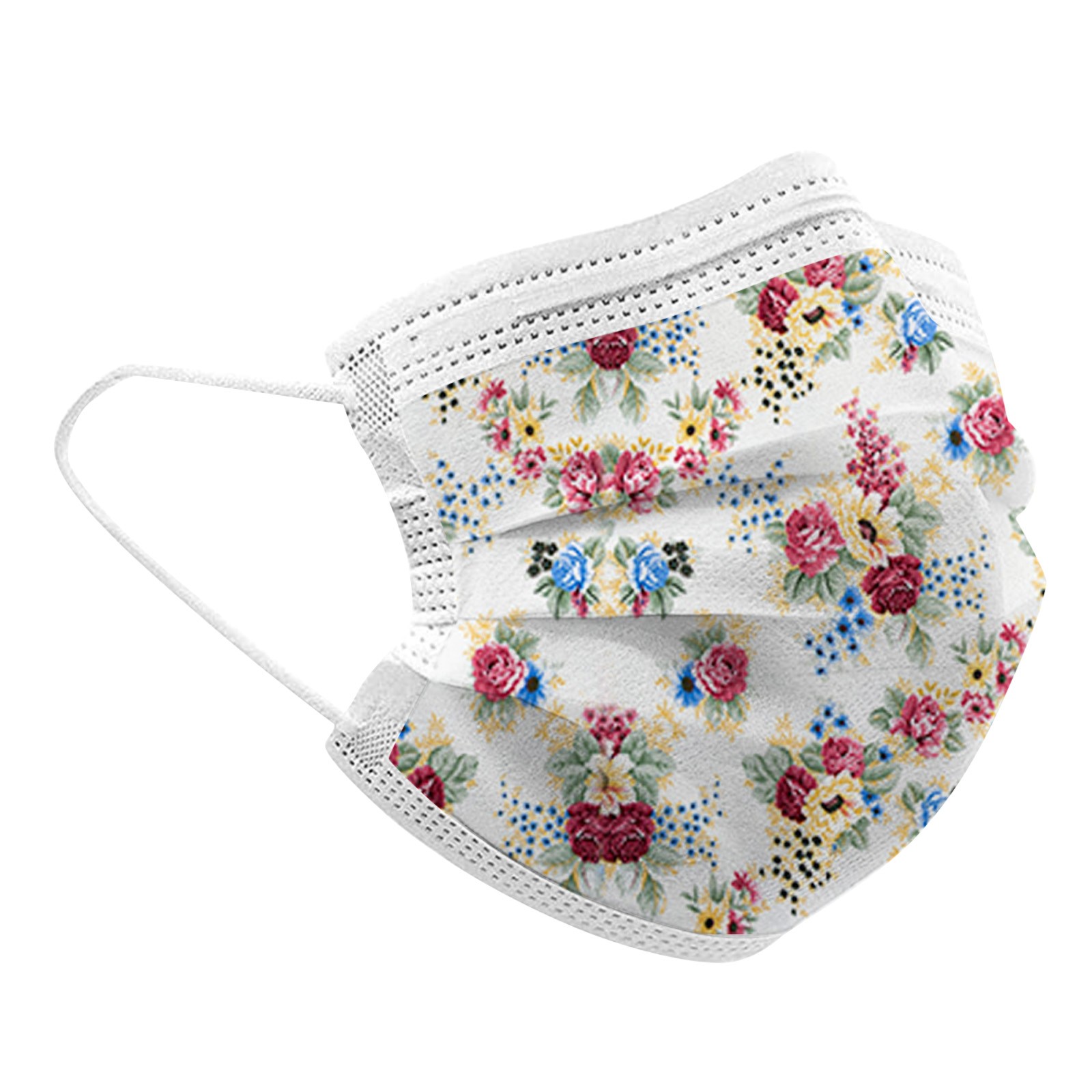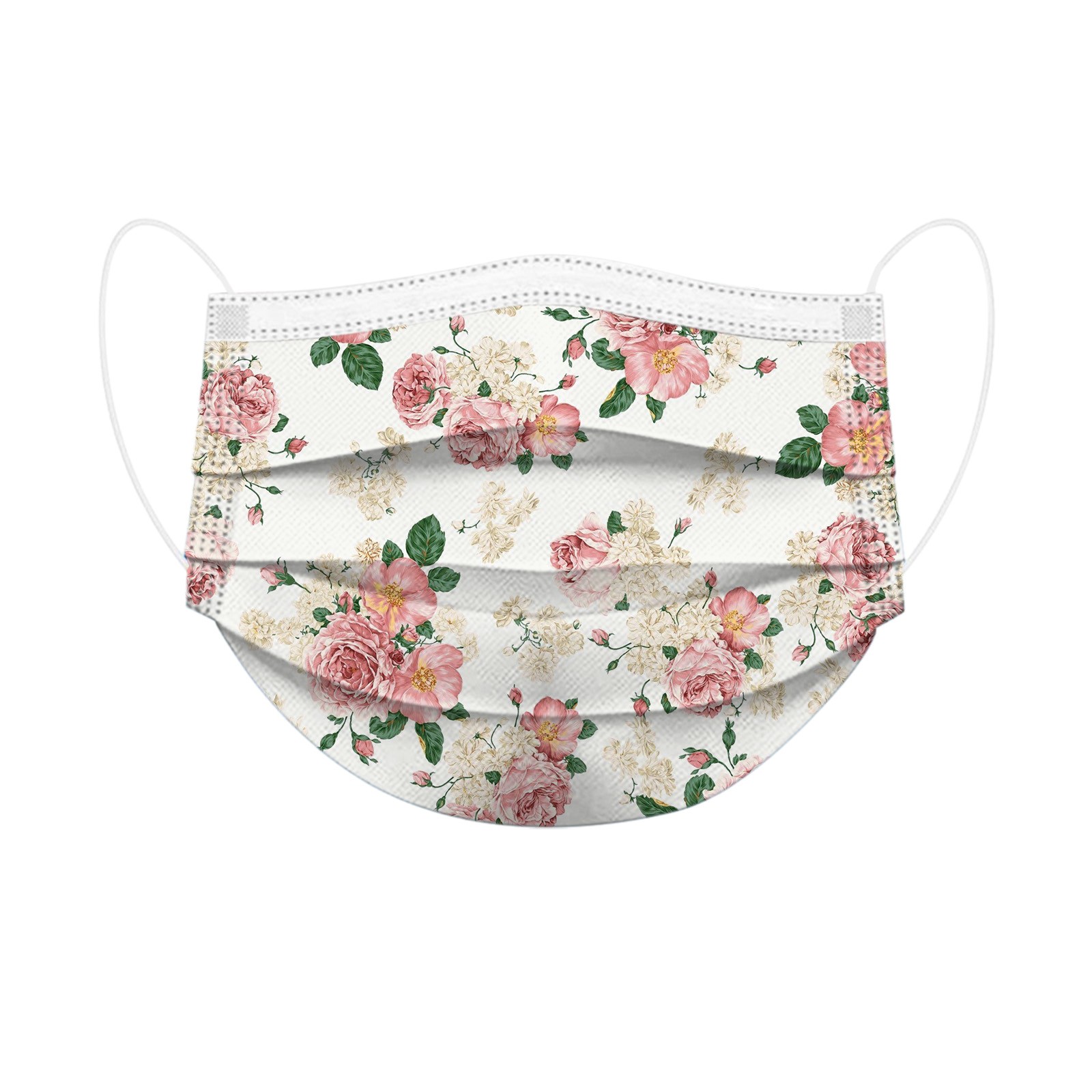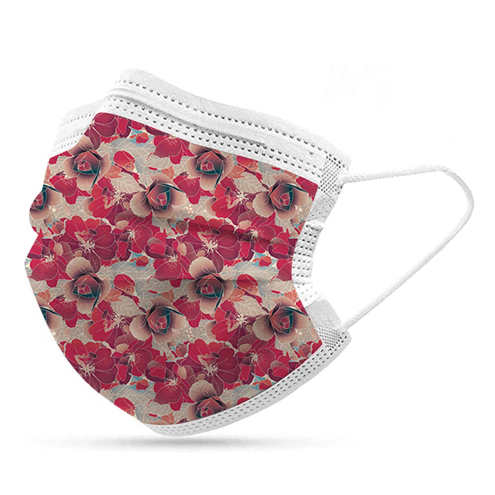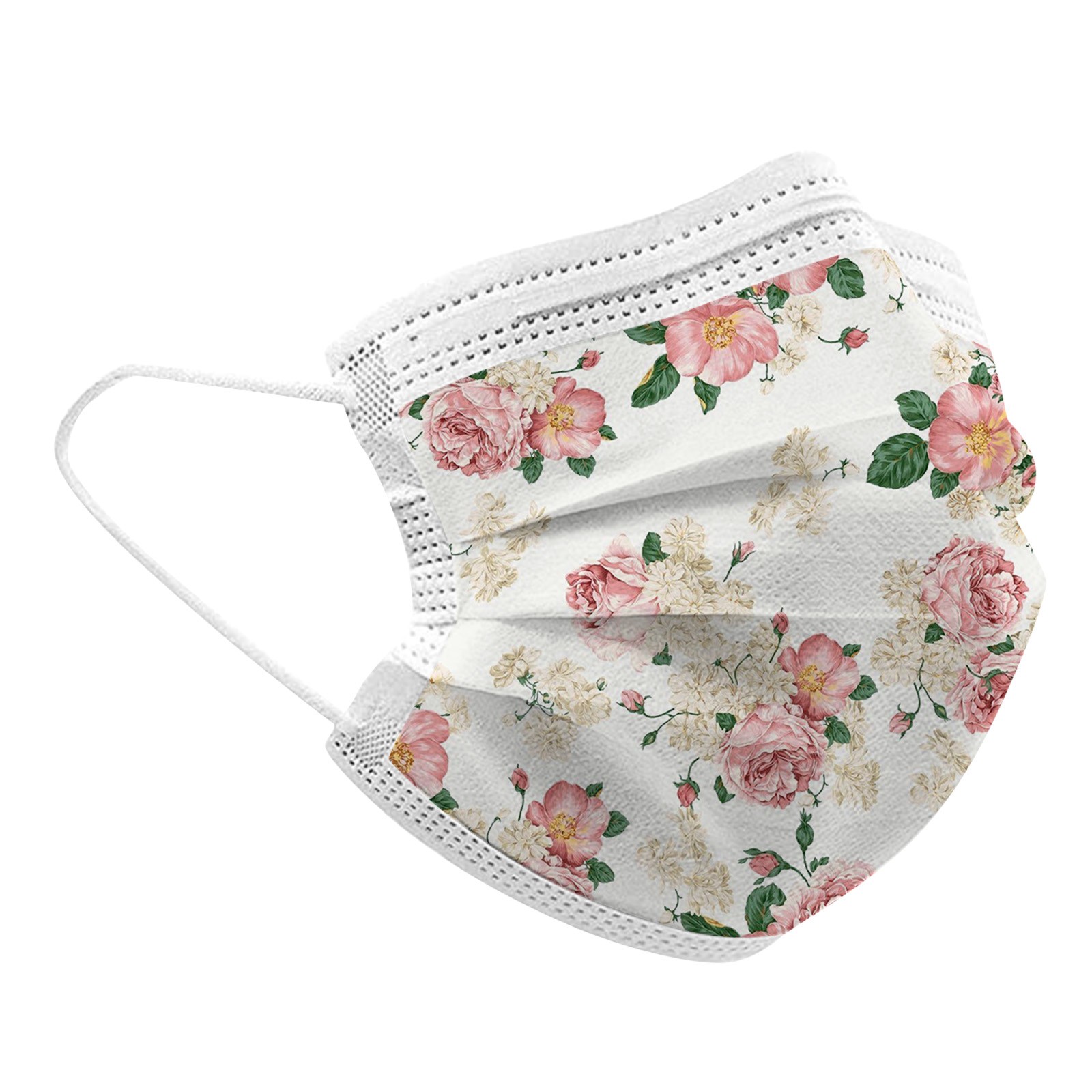 50PCS Adults Beautiful Elegant Flower Prints Breathable 3 -Layer Disposable Mask