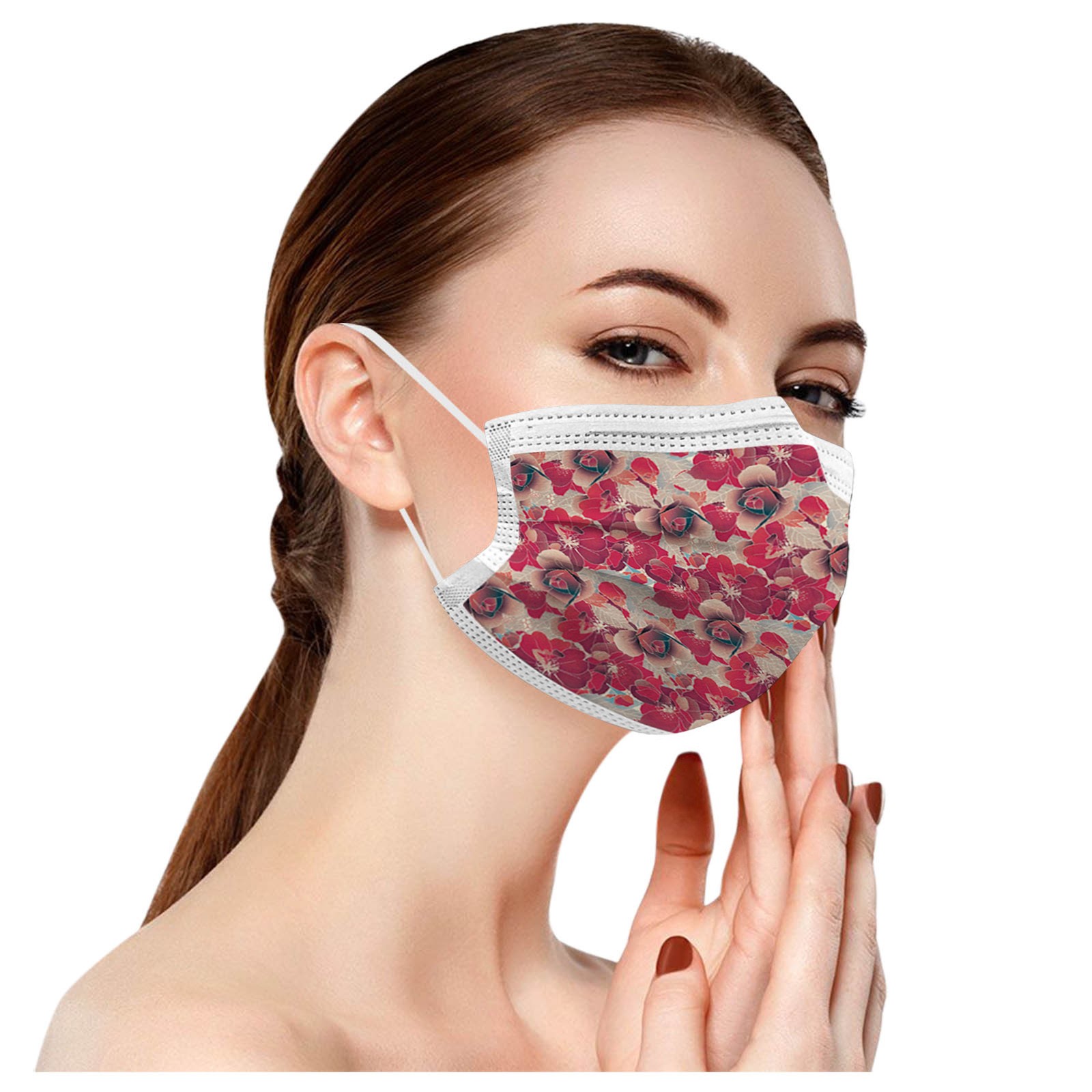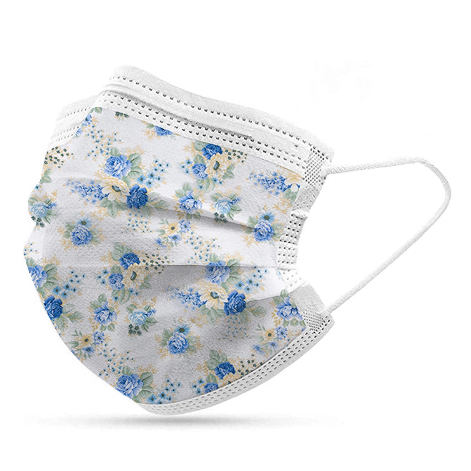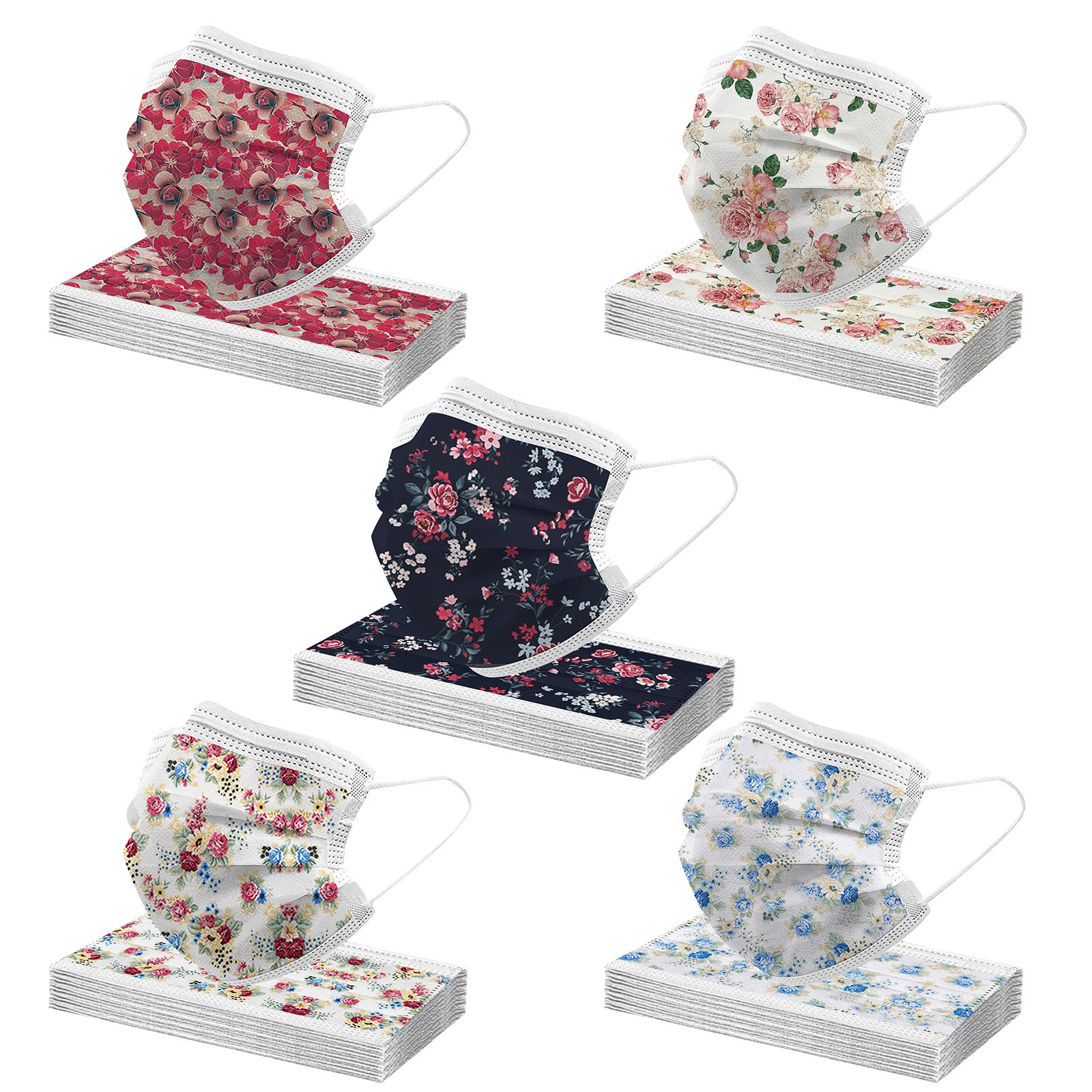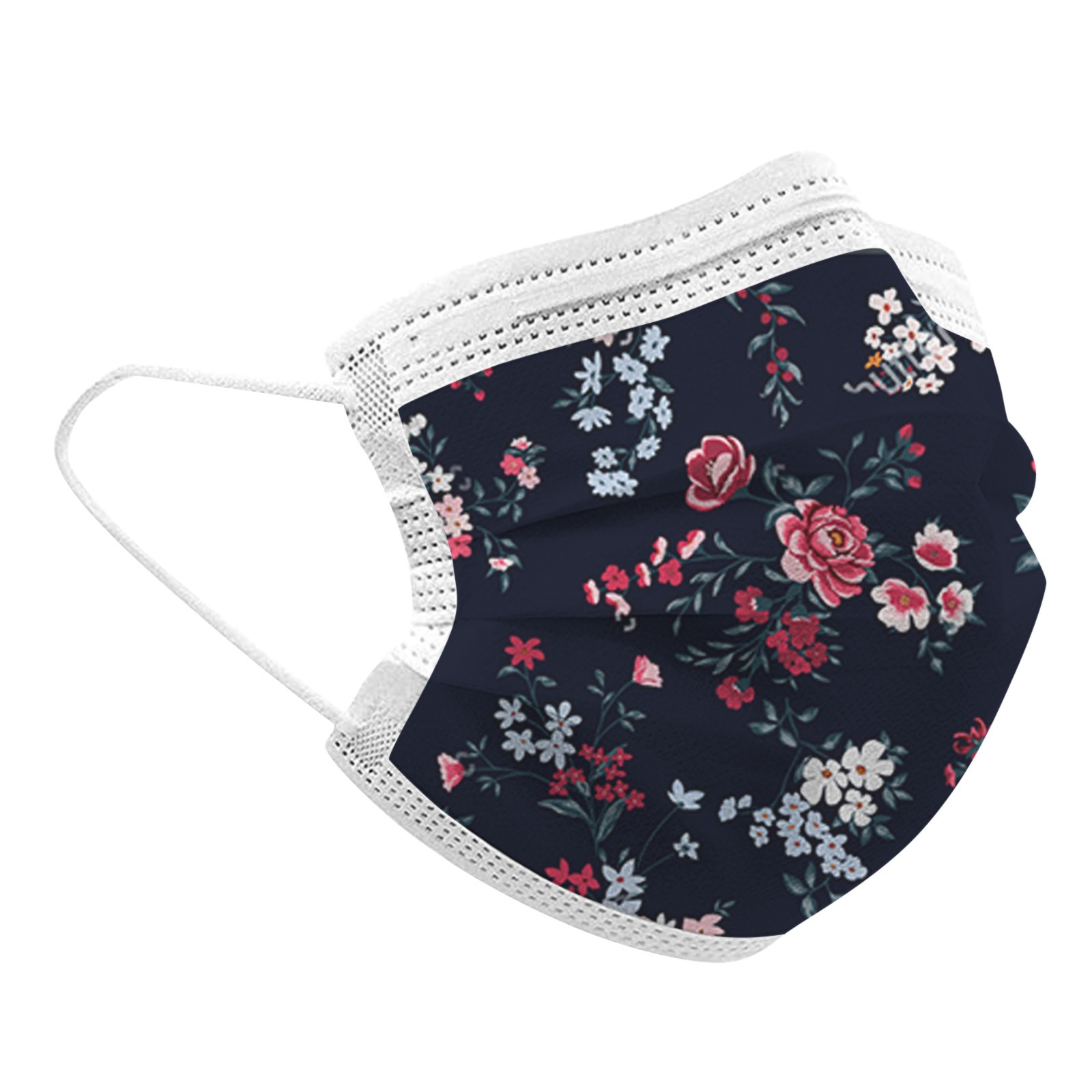 50PCS Adults Beautiful Elegant Flower Prints Breathable 3 -Layer Disposable Mask
