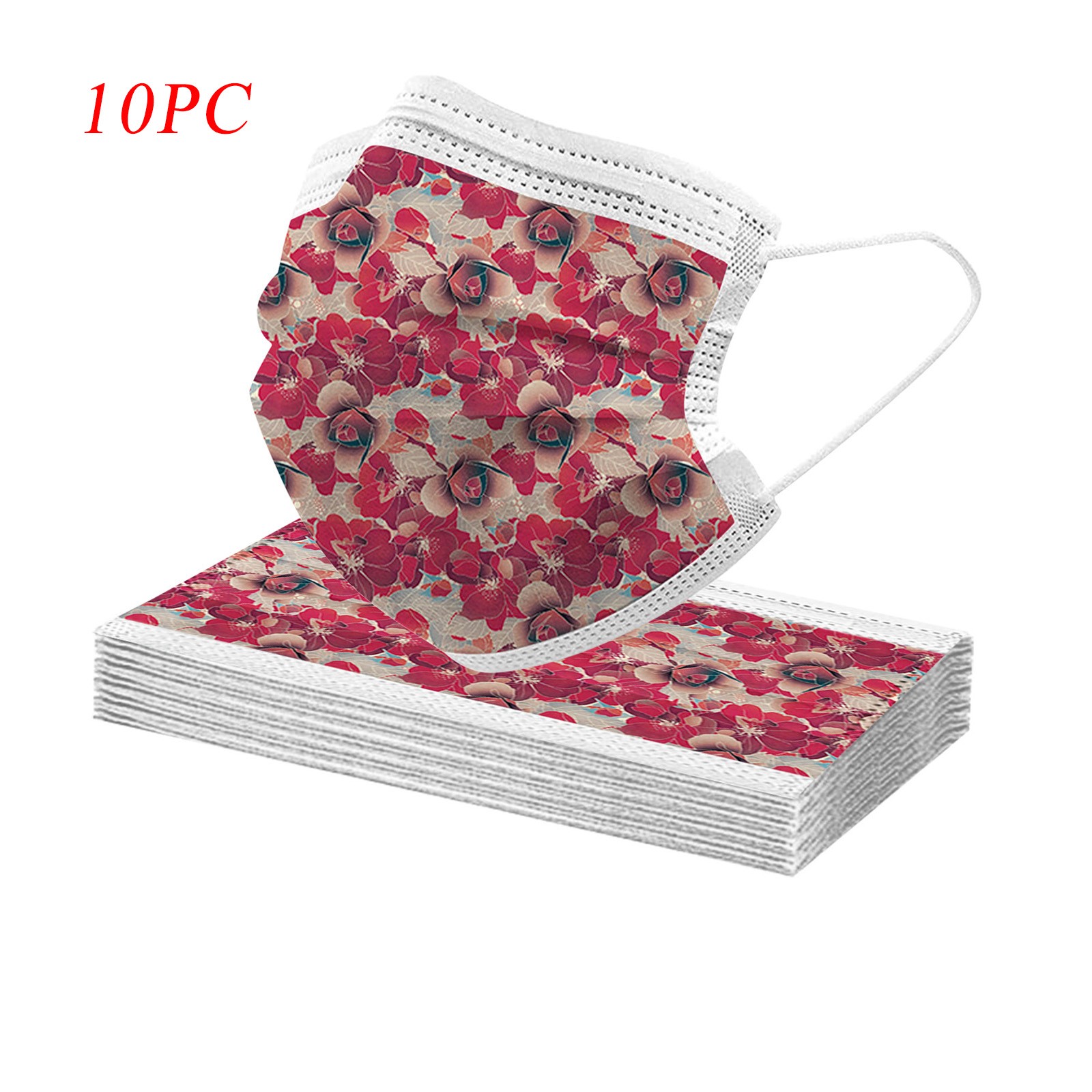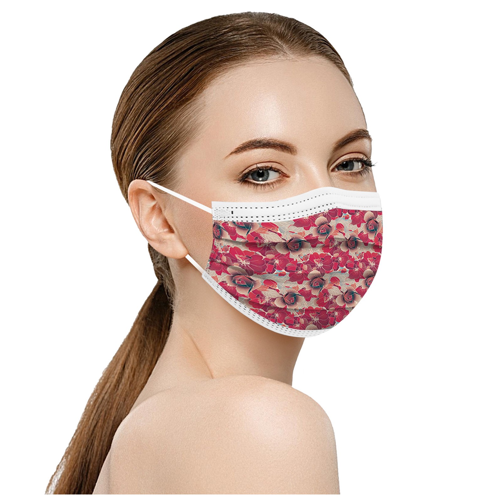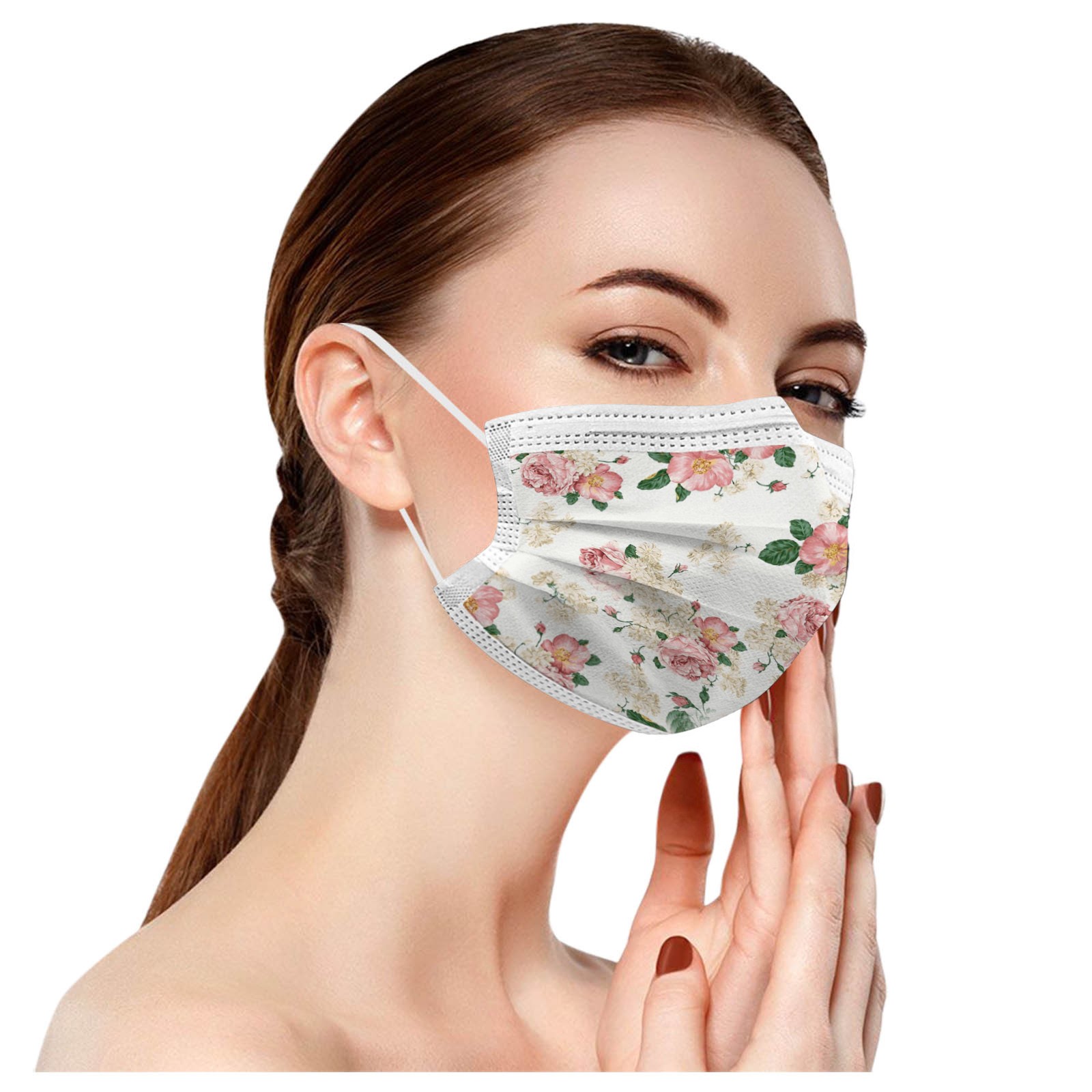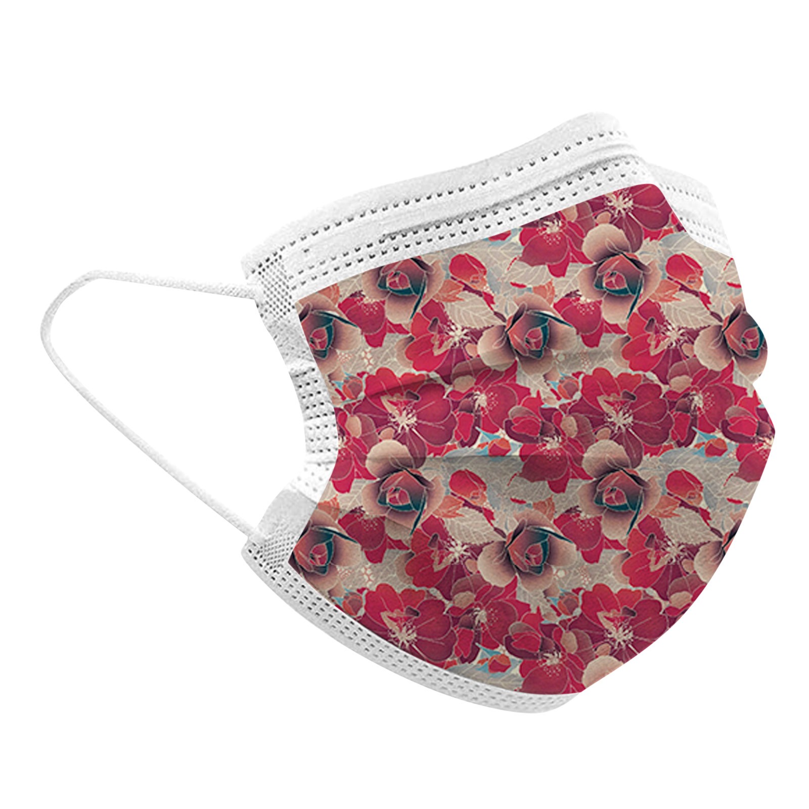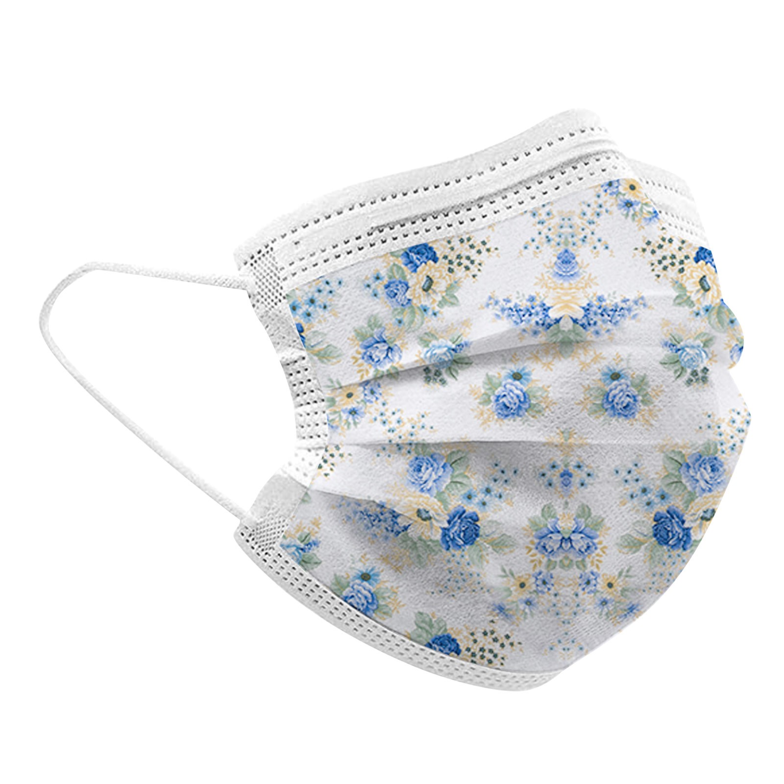 50PCS Adults Beautiful Elegant Flower Prints Breathable 3 -Layer Disposable Mask