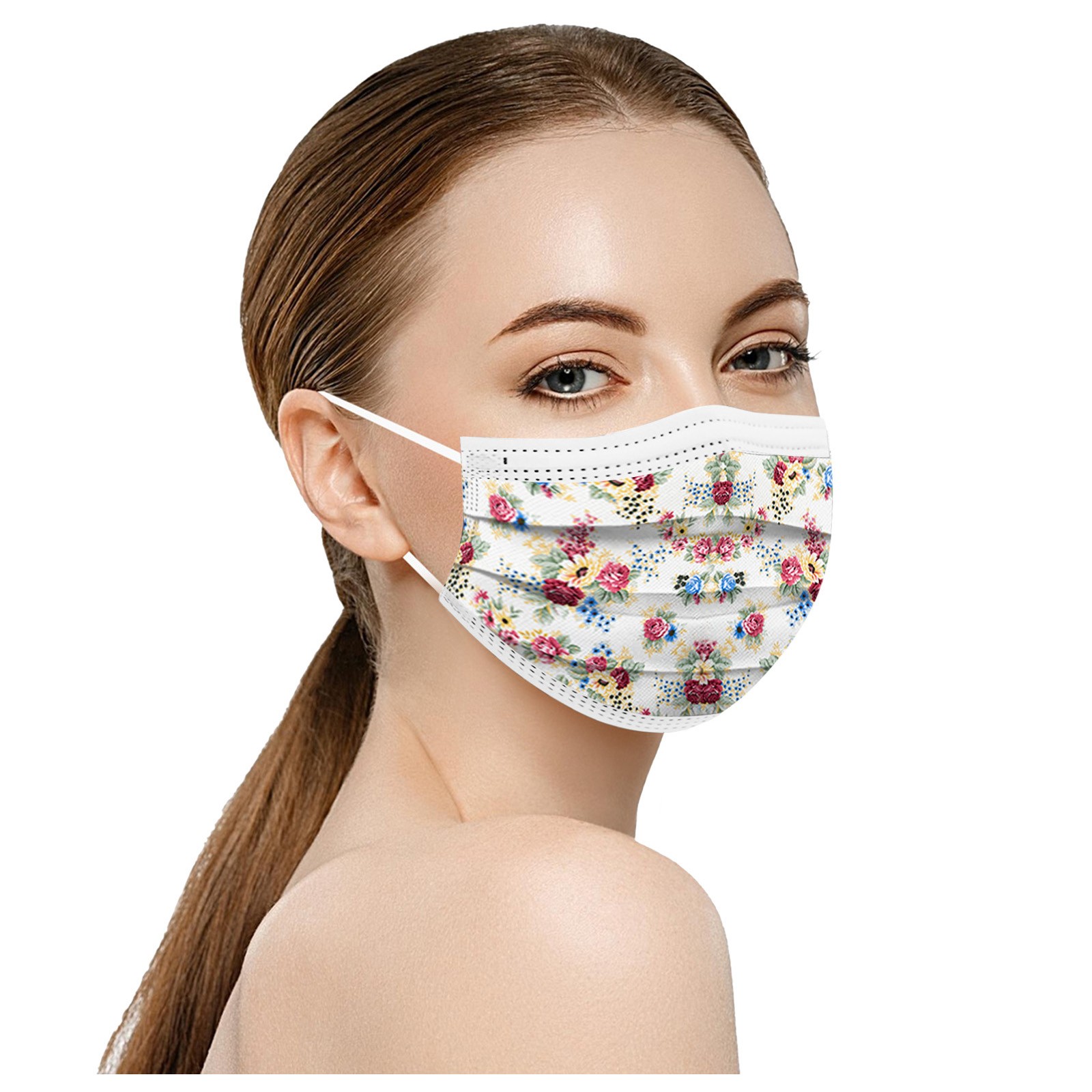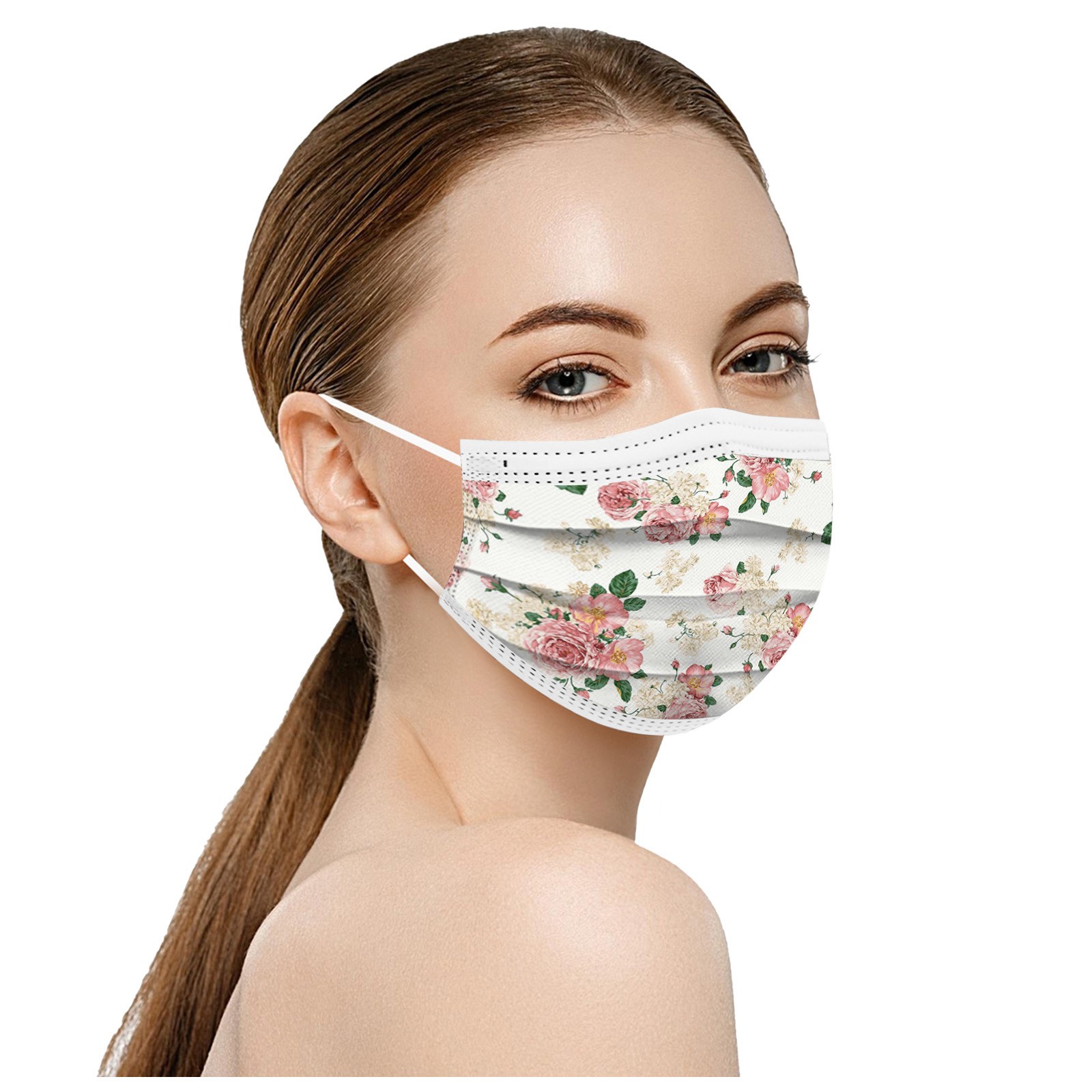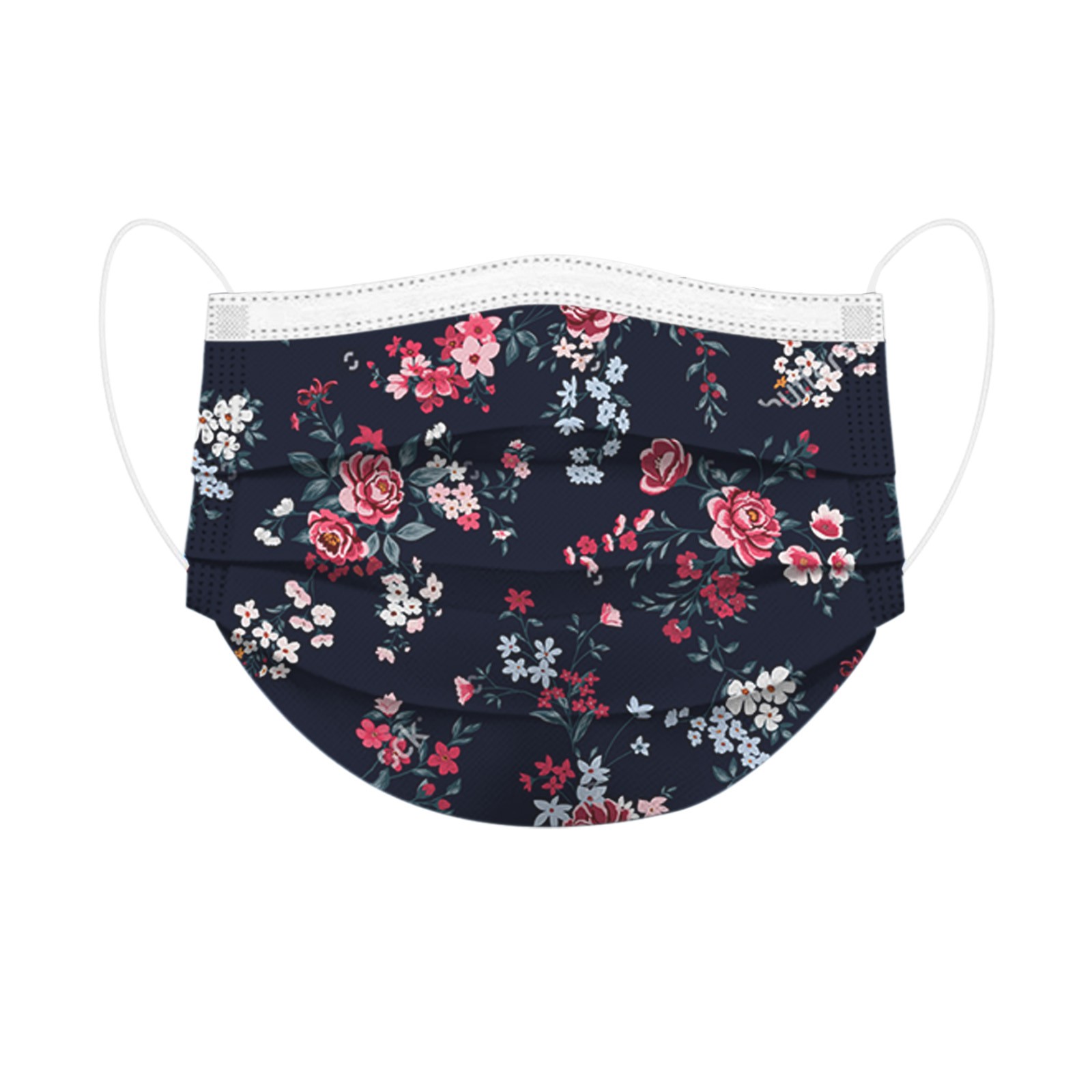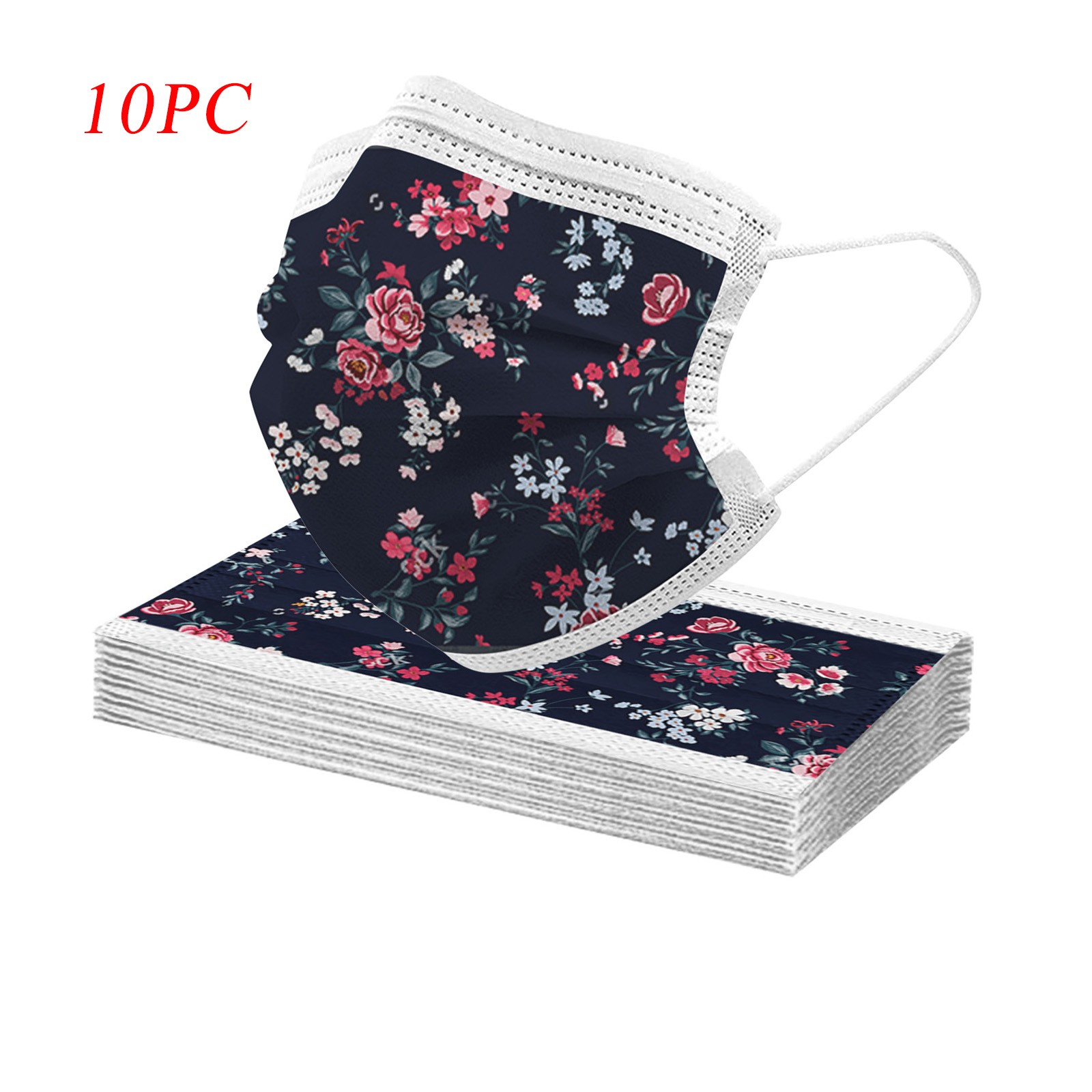 50PCS Adults Beautiful Elegant Flower Prints Breathable 3 -Layer Disposable Mask