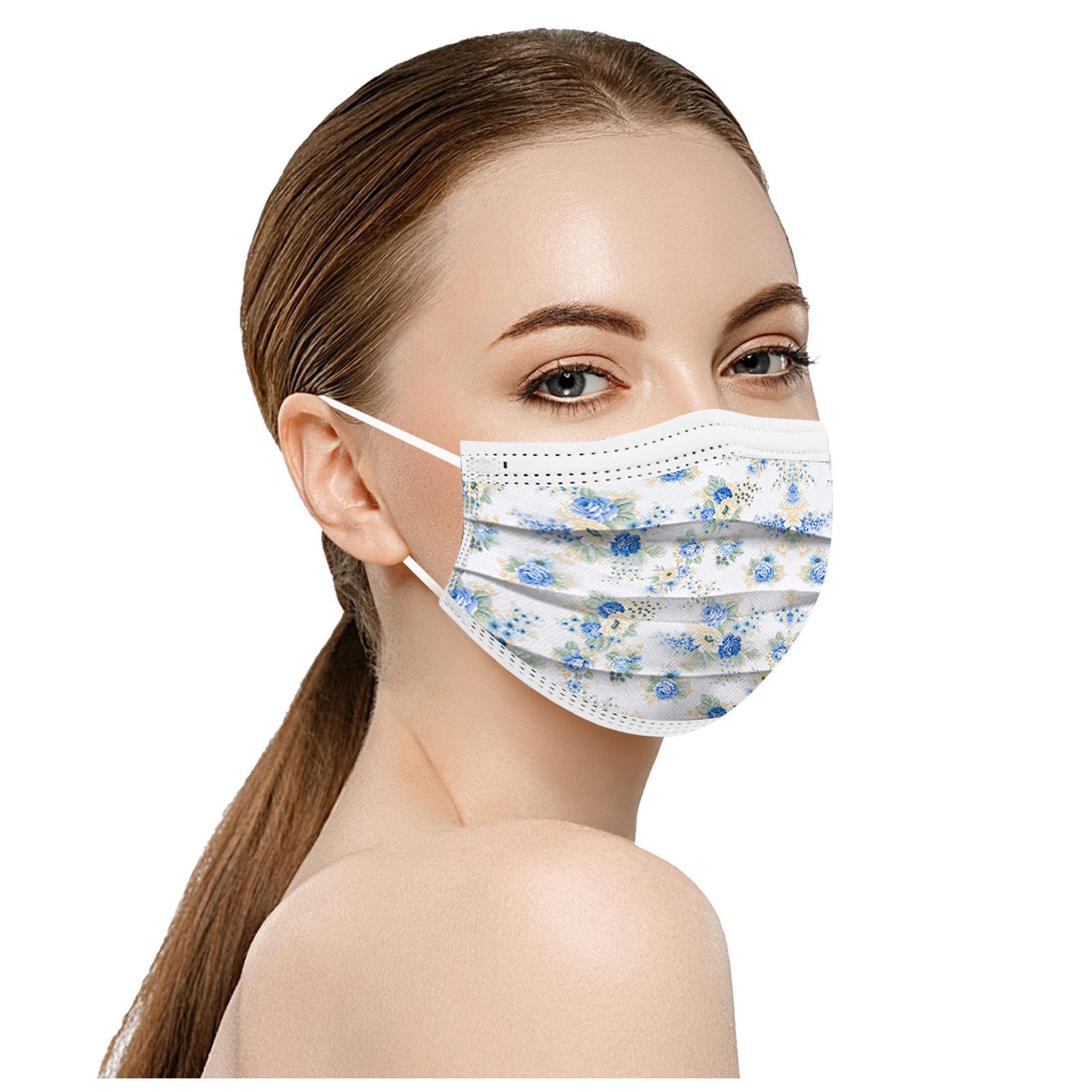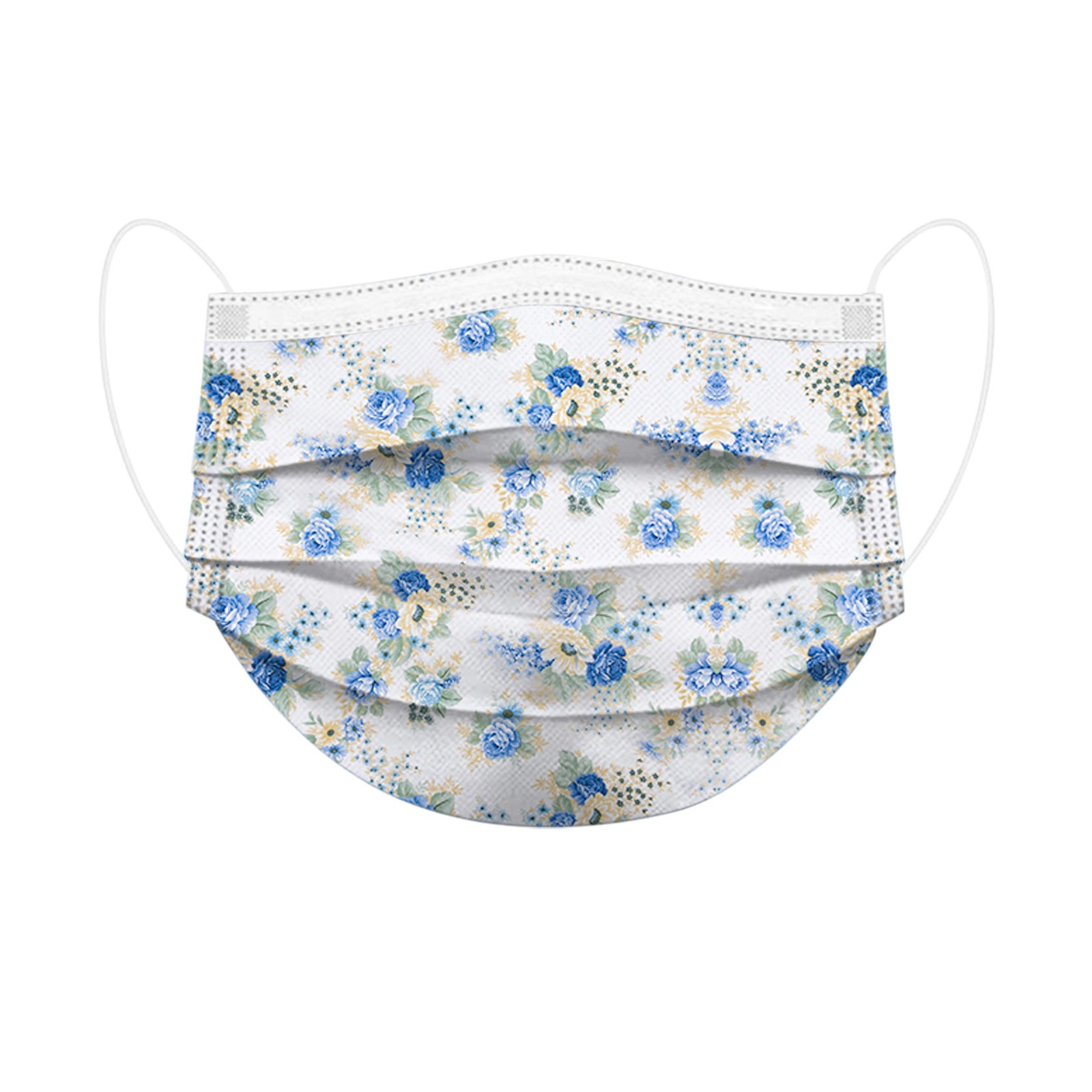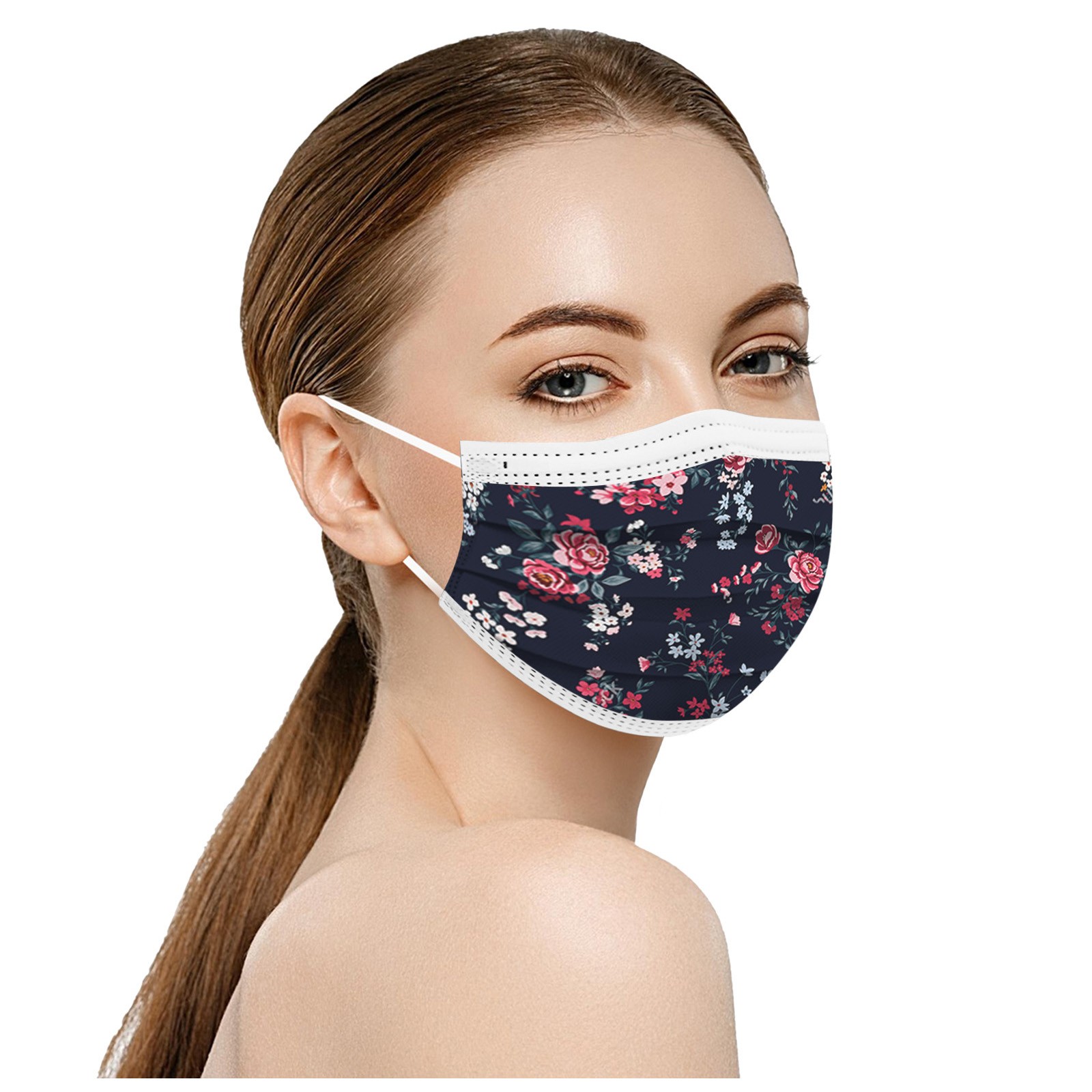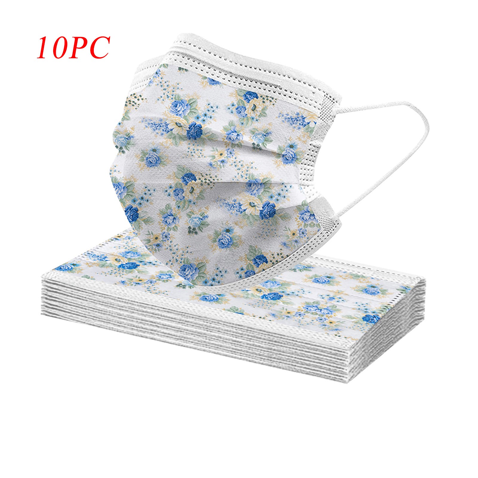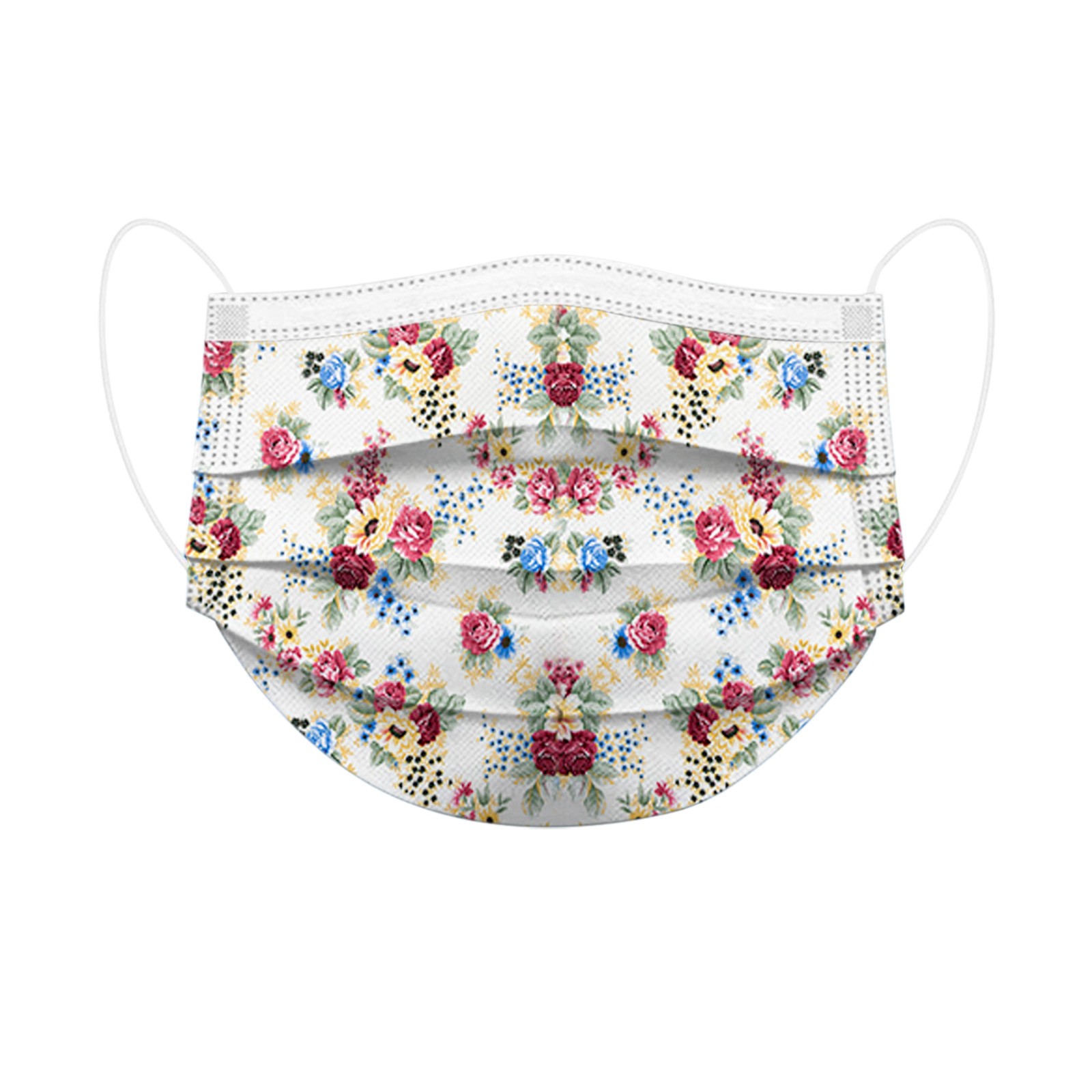 50PCS Adults Beautiful Elegant Flower Prints Breathable 3 -Layer Disposable Mask
