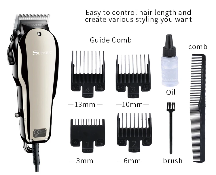 1. Машинка для стрижки волос лезвия может быть отрегулировано от 0,1 мм-3,0 мм, оснащен 4 лимит расчески (3 мм/6 мм/10 мм/13 мм), которые могут вырезать различные длины, чтобы создать вам эксклюзивную прическу.