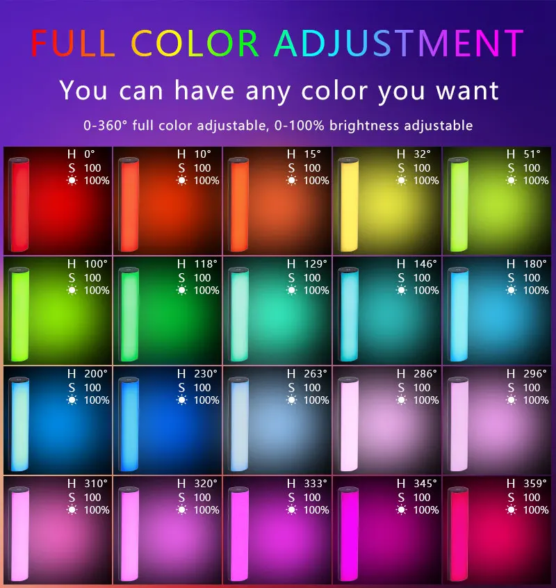 1. Полный Цвет RGB, 0 °-360 ° полный цвет.