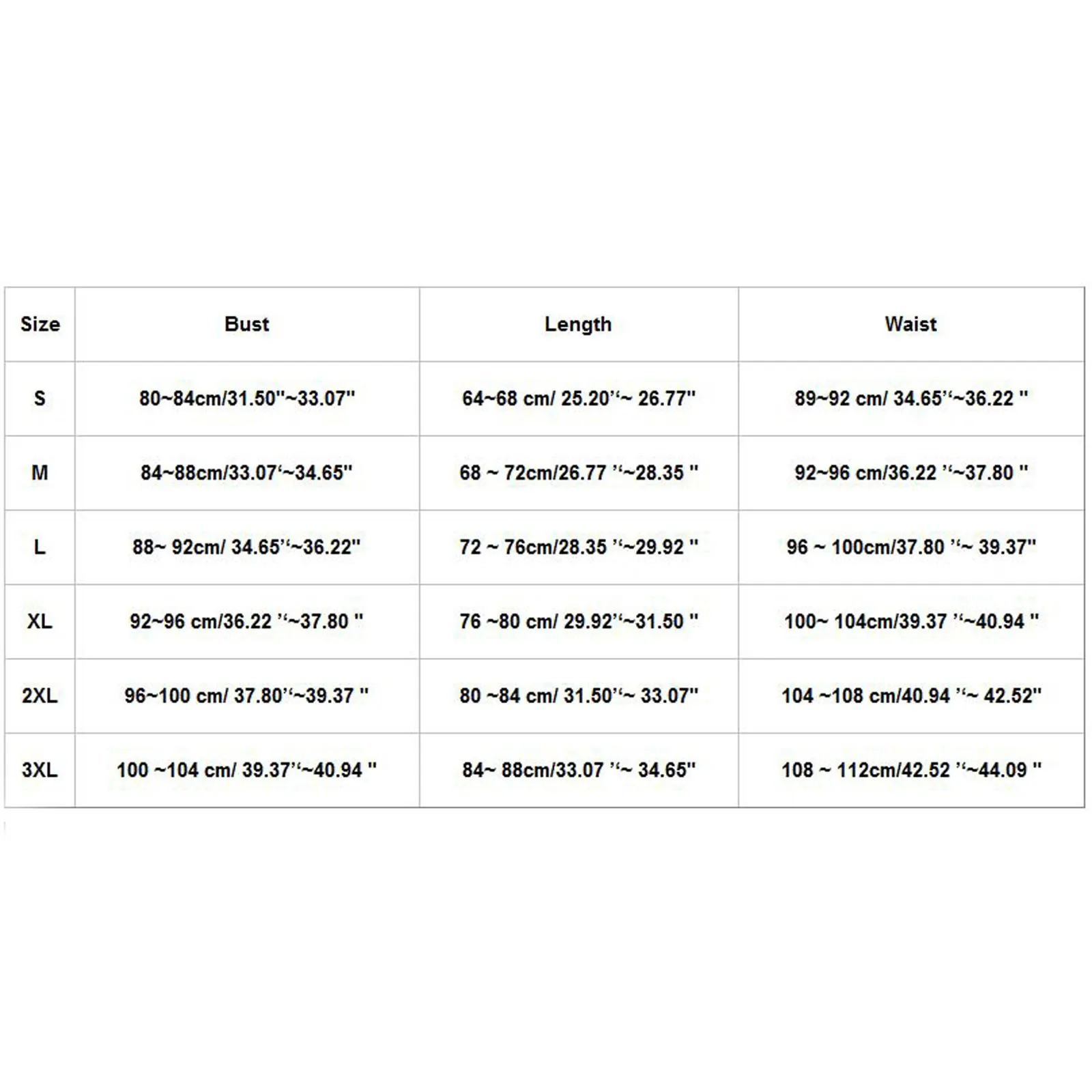 | 3XL | 100 ~ 104 см/39,37 "~ 40,94" | 84 ~ 88 см/33,07 ''~ 34,65" | 108 ~ 112 см/42,52 "~ 44,09" |