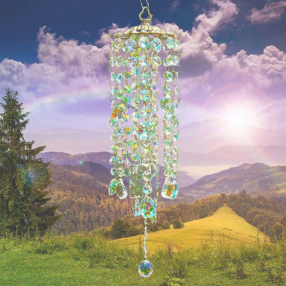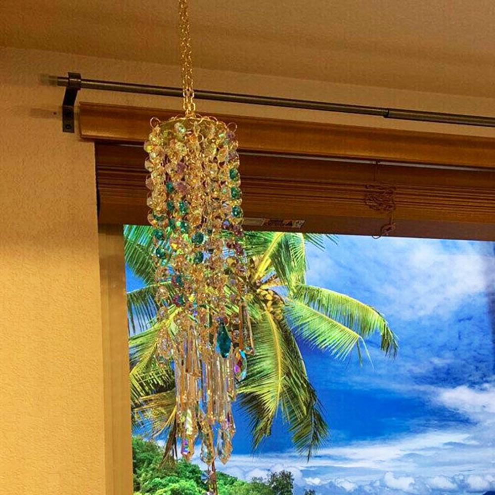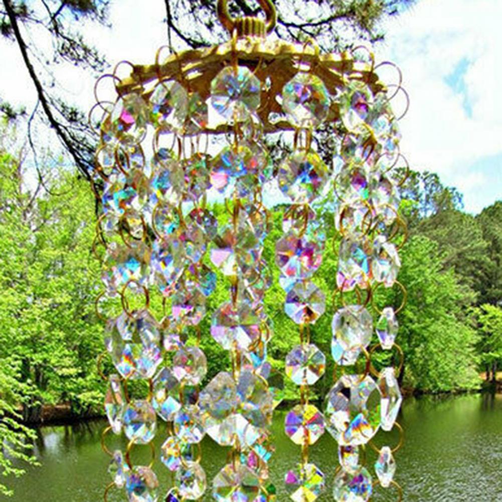 Колокольчик ветра разработан с прозрачной и неправильной формой, он изысканный и может преломлять различные цвета под солнечным светом.