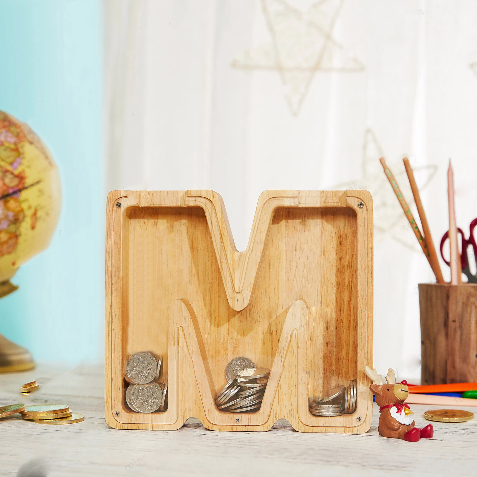 Внешний вид: это деревоРезервуар для храненияПисьмо-прекрасный подарок для мальчиков и девочек любого возраста. Это прочная, практичная и развивающая деревянная игрушка. Благодаря органическому стеклу ребенок может наблюдать рост своих сбережений.