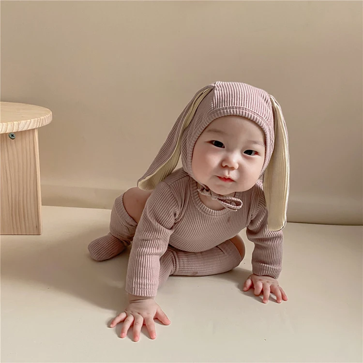 1 комплект, милый детский комбинезон с заячьими ушками + шапочка + носки, боди в рубчик, комбинезоны для новорожденных, комбинезоны, реквизит для фотосессии, 2T