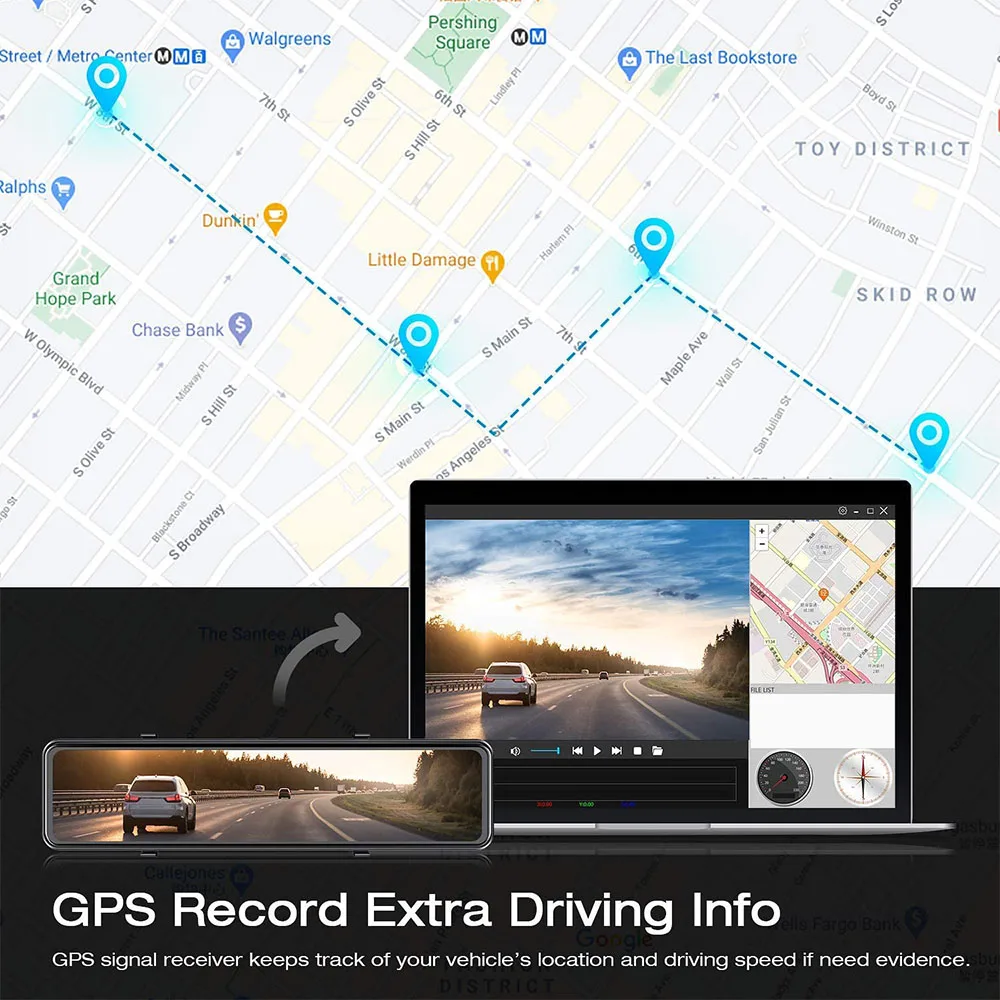 Применение: 4K Камера, GPS трек, превышения скорости подскажите, потоковый медиа зеркало заднего вида, а также отличное ночное видение, видео, 24 часа в сутки для парковочной системы, столкновения сенсор, передние и задние двойные видео (широкий динамический диапазон), циклическая запись, регулируемый угол обзора, специальный Монтажный держатель