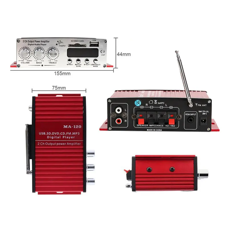 MA120 bluetooth мотоцикл 12V карта вставки фоновая музыка усилитель мощности автомобиля цифровой USB ридер аудио усилитель динамик