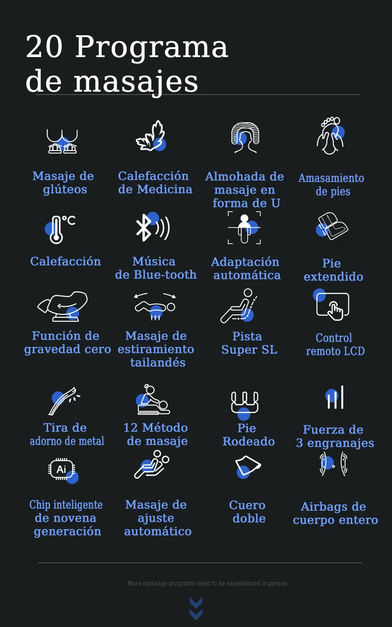 * Area de masaje: cuerpo completo