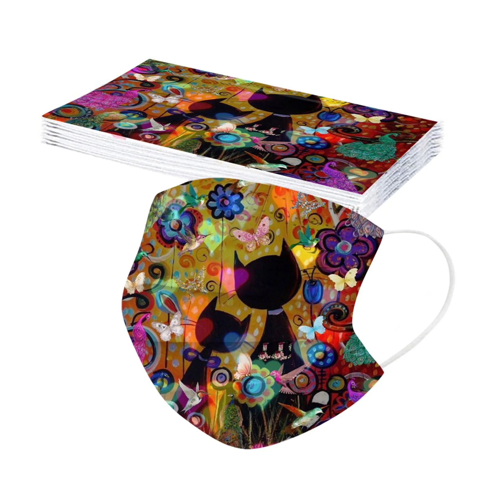 50 шт взрослые цветы кошка мультфильмы печать трехслойная одноразовая Защитная маска