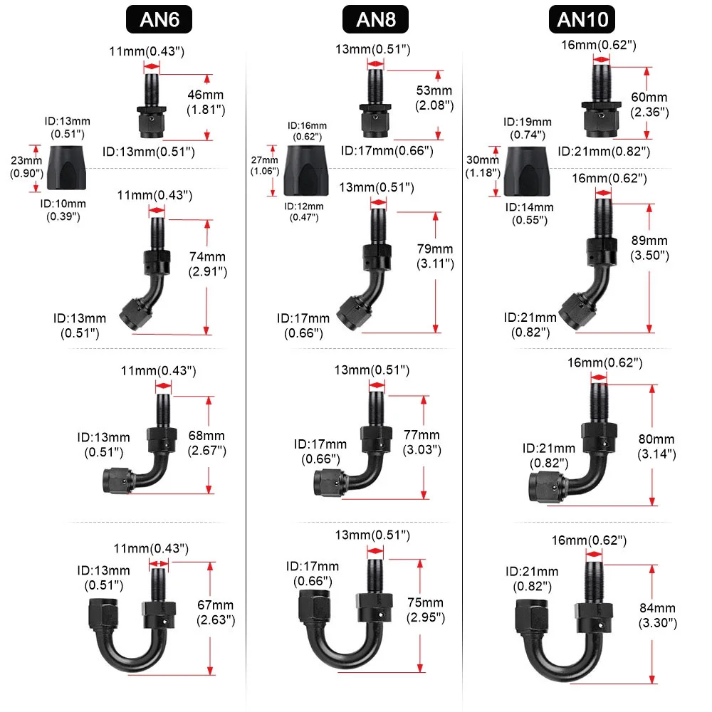 AN6, AN8, AN10 не означает 6 мм, 8 мм, 10 мм. Что соответствует внутренний диаметр трубопровода были 8,7 мм, 11,11 мм, 14,2 мм. Поэтому при покупке товаров обязательно обратите внимание на внутренний диаметр трубки.