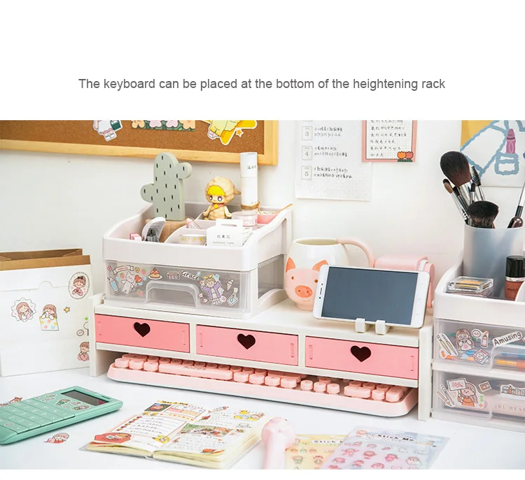 Cute Desktop Computer Monitor Increase Rack Office Dormitory Desktop Storage Bedroom Table Shelf Stationery Storage Supplies