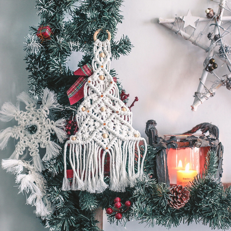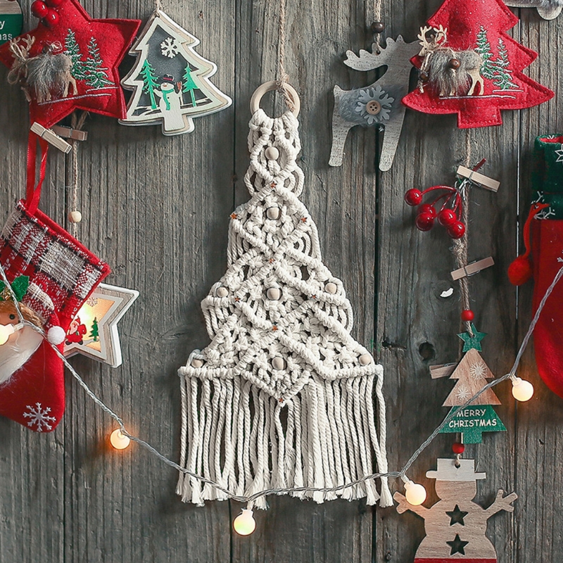 Hand-woven Macrame Tapestry Woven Christmas Tree Hanging Pendant Kids Baby Room Wall Decorations Accessories