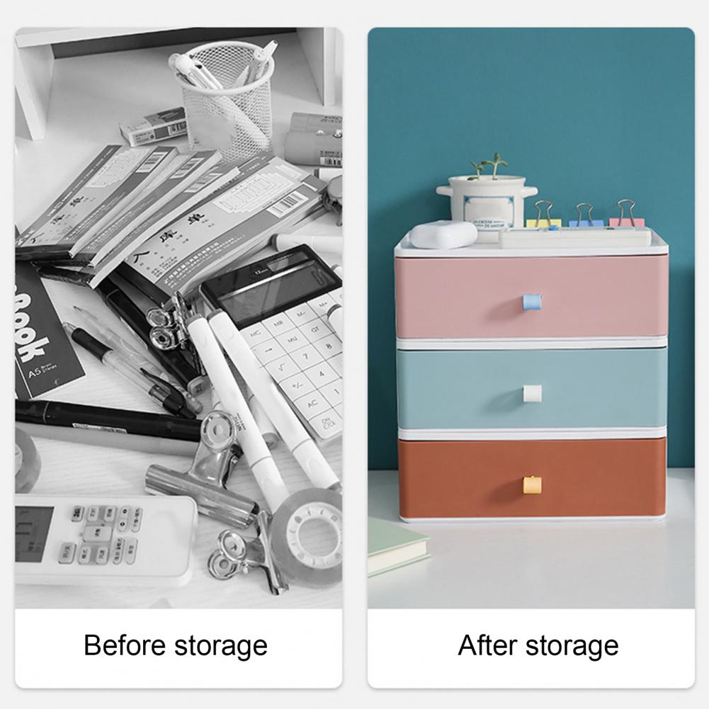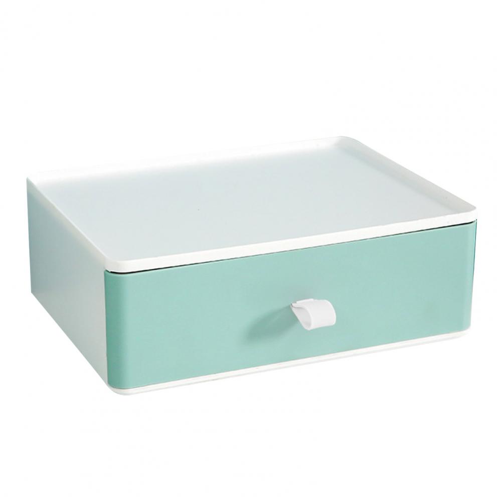 Изготовлено из пластикового материала, этот настольный ящик для хранения является легким и прочным.