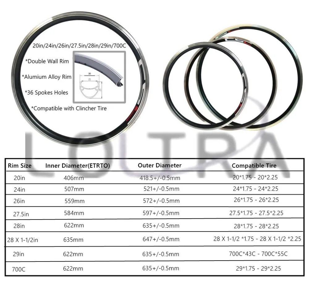 Размер обода: 26 "/27,5"/28 "/29"/700c
