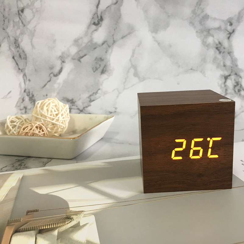 Светодиодные часы с деревянным будильником, светящийся датчик температуры и влажности, двойной дисплей, Настольный будильник, USB деревянные часы